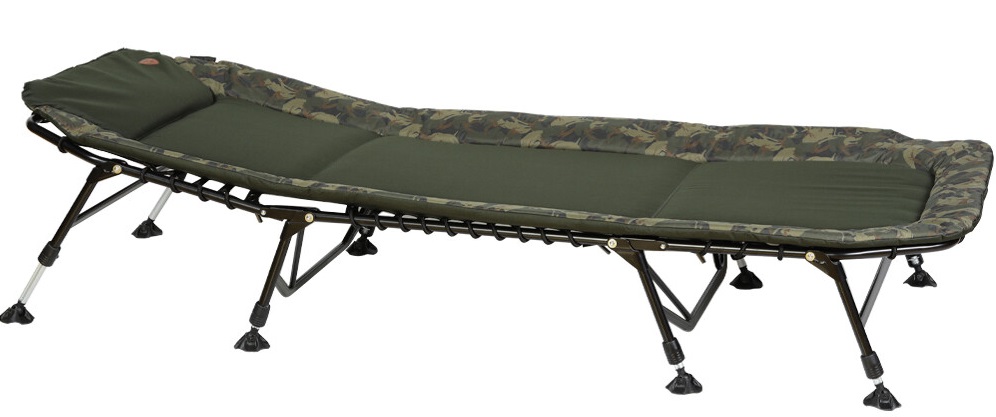 Kvalitně zpracovaná konstrukce má vysokou nosnost do 150kg. Nožičky lehátka jsou zakončeny velkými packami proti zaboření do bláta. Každý rybář si může na tomto lehátku nastavit požadovanou tuhost matrace.