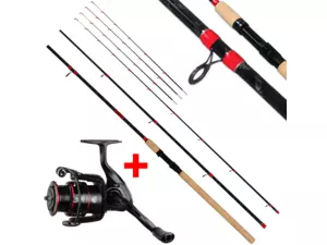 Akční set obsahuje luxusní feederový prut, který je dodáván se čtyřmi špičkami, navijákem s přední brzdou, 4+1 ložisky a kovovou cívkou. Další info