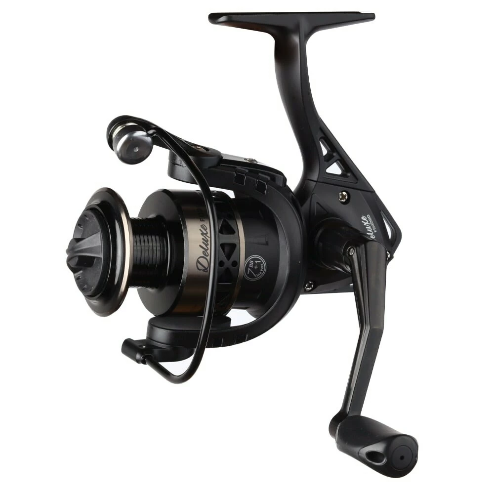 Tyto feederové pruty jsou vyrobeny z kvalitního grafitu IM6 a mají středně rychlou akci. Jsou velmi univerzální, výkonné díky své parabolické akci. Díky rozsahu nabízených špiček, jste připraveni na jakou situaci a druh lovené ryby. Souhrn špiček dodávaných k prutu: žlutá – tužší (sklolaminátová), červená - střední tuhost (grafitová) a zelená – jemná (sklolaminátová). Prut je osazen kvalitními dvojitě vázanými SIC očky a má ergonomické DPS grafitové sedlo černé barvy. Rukojeť kombinuje přírodní korek s EVA pěnou a na koncích je drcený korek. Specifikace: Délka: 11 ft (3,3 m) Zátěž: 50-100 g Transportní délka: 115 cm Hmotnost: 244 g Počet dílů: 3+3 Naviják Deluxe FD je moderní konstrukce, který ve své cenové kategorii překvapí ultra lehkým chodem. Jemně nastavitelná a účinná přední mikro brzda. Konický tvar odlehčené kovové cívky, na kterou se vejde optimální množství vlasce. - Masivní grafitové tělo a rotor - Kovová cívka + náhradní grafitová cívka - 7+1 precizních kuličkových ložisek - Pevnostní hnací soukolí - Systém pro perfektní navíjení vlasce - Rolnička proti kroucení vlasce - Precizní systém přední brzdy - Zastavení zpětného chodu v jakékoli poloze - Kapacita cívky: 0,25mm – 270m, 0,30mm – 180m - Převodový poměr: 5.2: 1 - Váha: 260g
