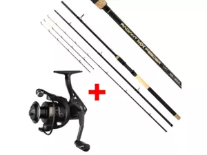 Akční set obsahuje kvalitní feederový prut, který je dodáván se třemi špičkami, navijákem s přední brzdou, 7+1 ložisky a kovovou cívkou. Další info