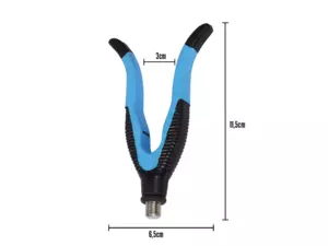 Díky svému tvaru je rohatinka vhodná na různé průměry rukojetí. Doporučujeme na feederové, pickerové a plavačkové pruty. Na závitové části se nachází gumová podložka, která zamezuje otáčení držáku. Šířka: 6,5 cm Výška: 11,5 cm Hmotnost: 40 g