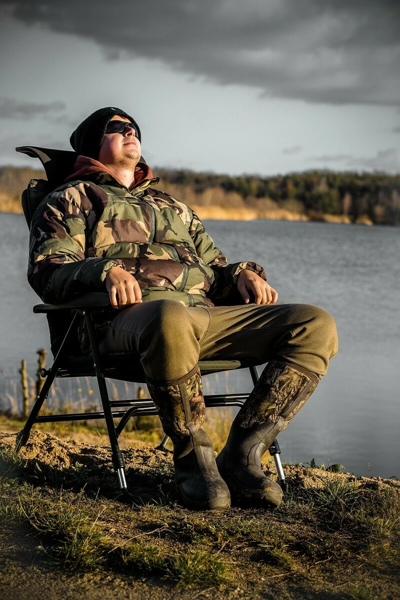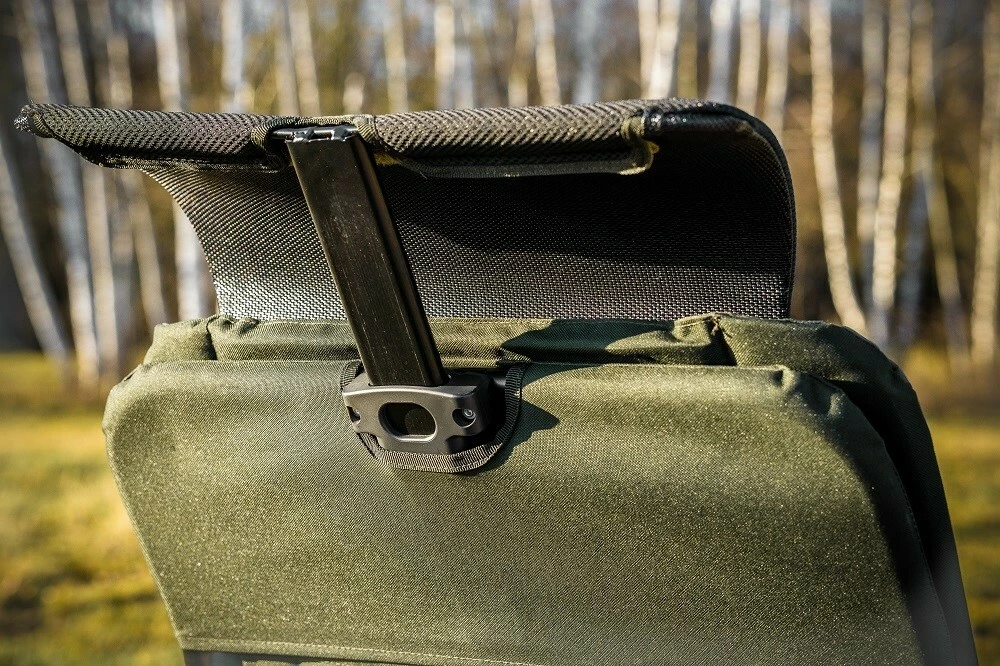 - Polstrování v kombinaci zelené a kamuflážové látky