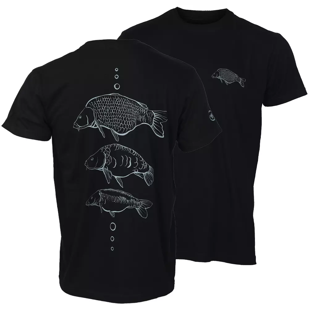 Kvalitní tričko v černé barvě s designem třech kaprů na zádech a decentním kapříkem v přední části. Další info