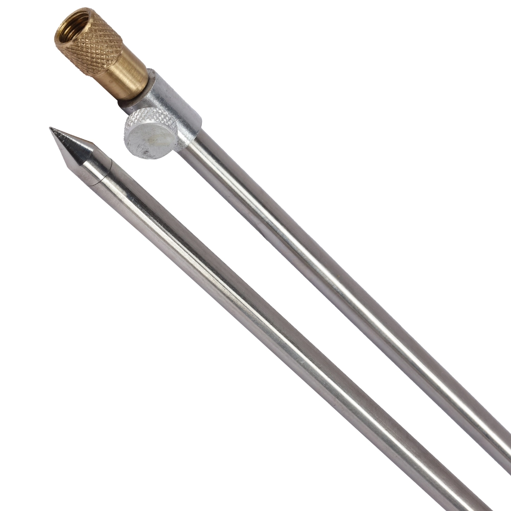 Tento model je zakončen závitem, který je určen k zašroubování elektronického hlásiče, nebo rohatinky či hrazdy. Požadovanou výšku nastavíte jednoduše pomocí závitu s maticí, která slouží k zafixování výšky rybářské vidličky. Délka: 50-90 cm Průměr vnější tyčky: 0,80 cm Průměr vnitřní tyčky: 0,45 cm