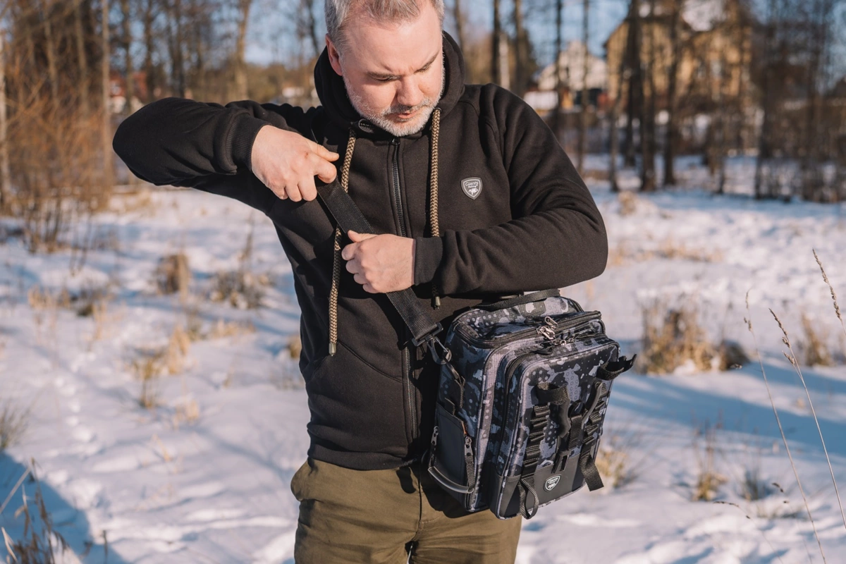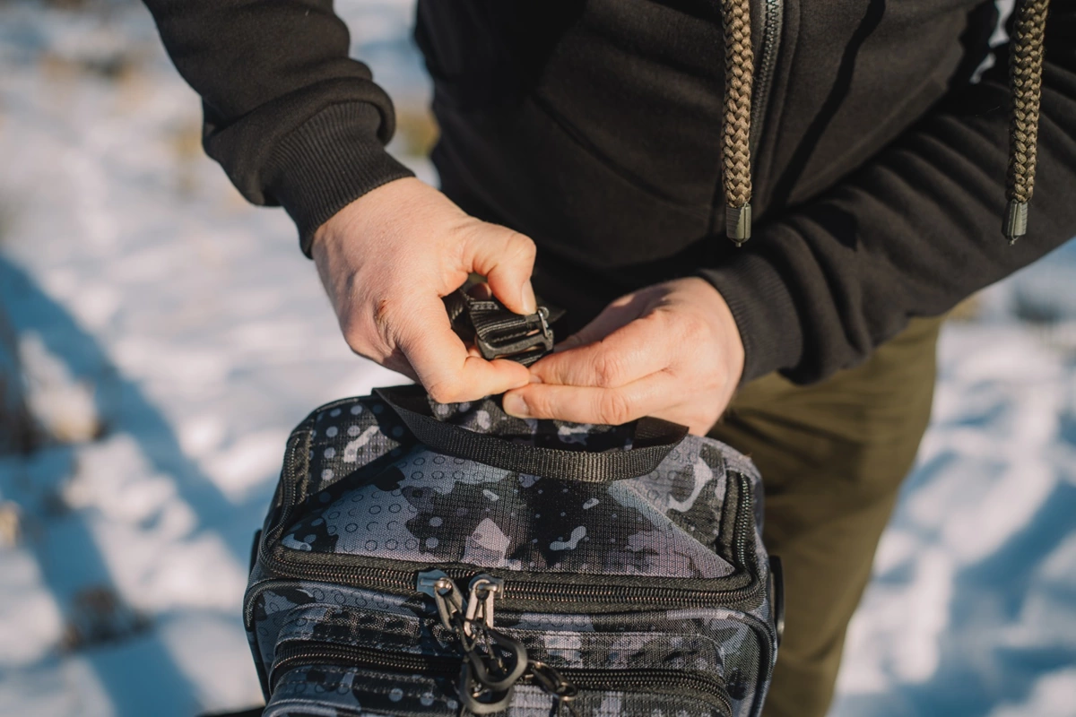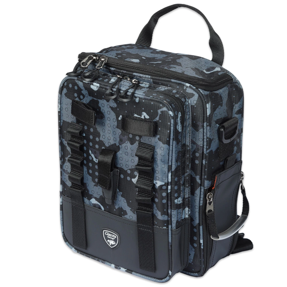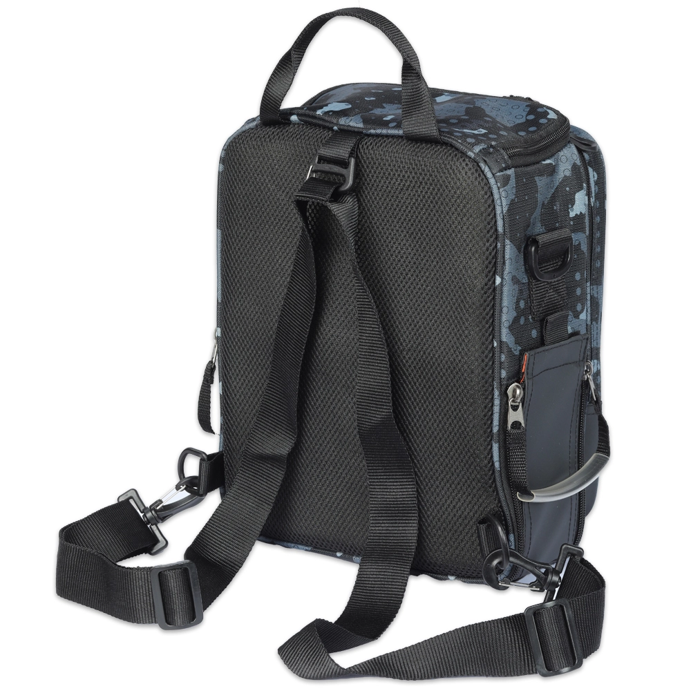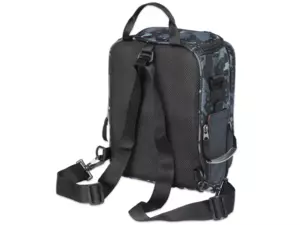 - Různé způsoby nošení, díky výměnnému ramennímu popruhu - Speciální poutka určená pro zavěšení prutů a kleští - Obsahuje jednu větší plastovou krabičku a dvě střední - Snadný přístup do zavazadla z různých stran - Atraktivní maskáčové provedení v černo-šedé barvě - Vodě odolný nylonový materiál 420D - Rozměry batohu: 31x25x14cm - Rozměry krabiček: 1x 27x17,5x4cm / 2x 23x12x4,5cm - Hmotnost: 1,17kg Odkaz na video: http://www.youtube.com/watch?v=tVFm_E4v_QQ