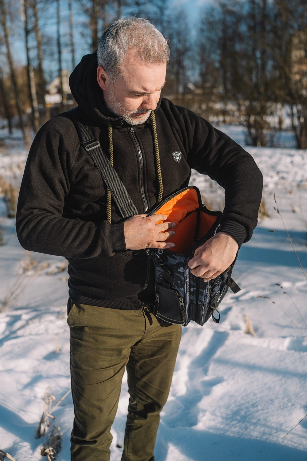 Vláčecí batoh, který díky výměnnému popruhu můžete změnit na tašku přes rameno. Tento batoh má speciální poutka na uchycení dvou prutů a kleští. Další info
