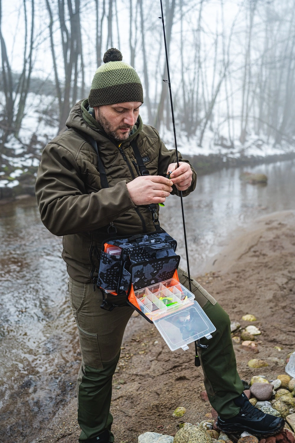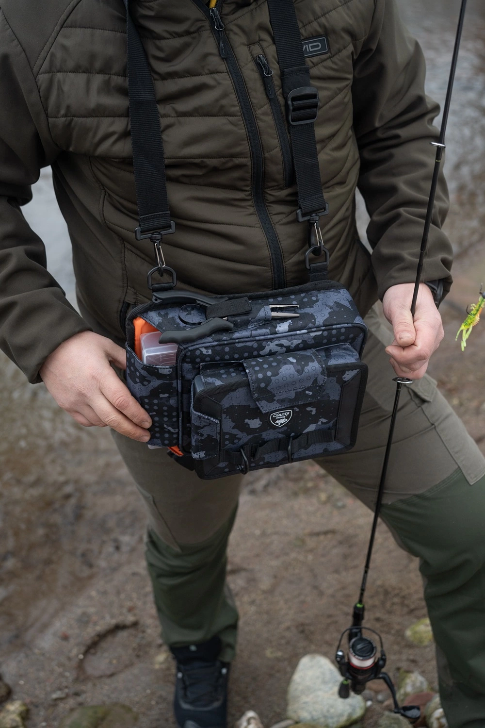 - Dvojí použití jako ledvinka, nebo taška na nohu - Provedení bez zipů pro snadný přístup ke krabičkám - Dodáváno včetně dvou plastových krabiček - Vyklopením přední části získáte platformu na přípravu nástrahy - Atraktivní maskáčové provedení v šedé barvě - Vodě odolný nylonový materiál 420D - Rozměry tašky: 21x11x29cm - Rozměry krabiček: Menší: 20 x 13,5 x 4 cm / Větší: 27 x 18 x 4 cm - Hmotnost: 0,9kg