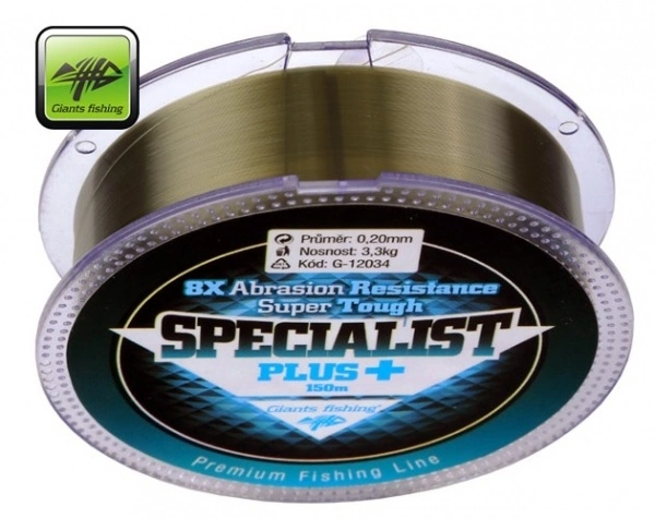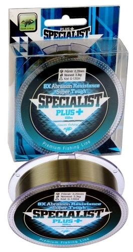 Specialist plus vlasec je vyroben ze speciální směsi Nylonu a Copolymeru, která je 8 x více odolná prodření ve srovnání s jinými vlasci na trhu, při zachování pevnosti a jiných důležitých charakteristik důležitých pro kvalitní vlasec. Specialist plus je velmi odolný tření jak na rolničce, tak při průchodu očky, ale hlavně při styku s podvodními překážkami, jako jsou skály, padlé kmeny. Je také odolnější při styku s rybími čelistmi.