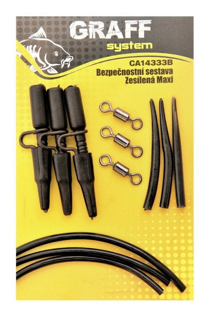 Bezpečnostní sestava Zesílená Maxi - balení obsahuje 3 kompletní montáže se zesíleným klipem na olovo pro daleké náhozy s těžkým olovem.