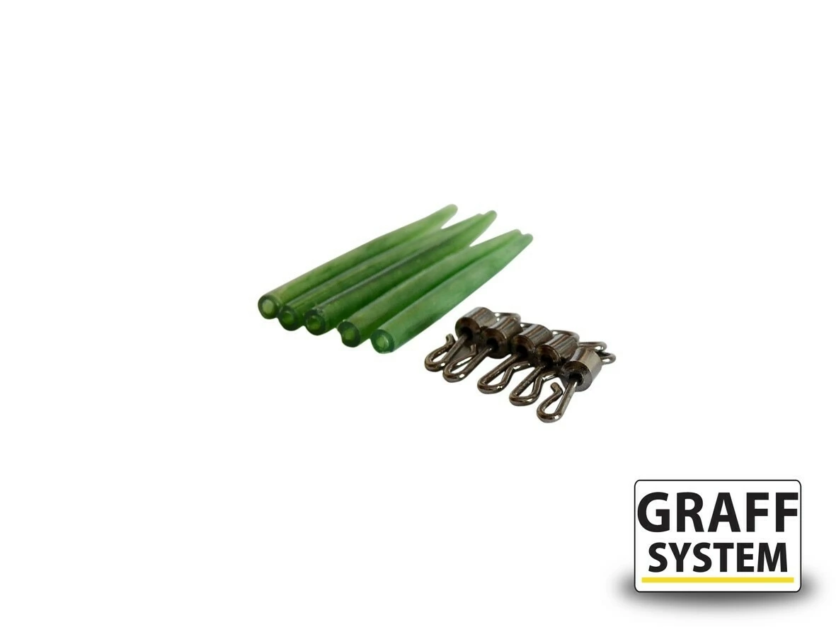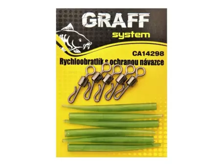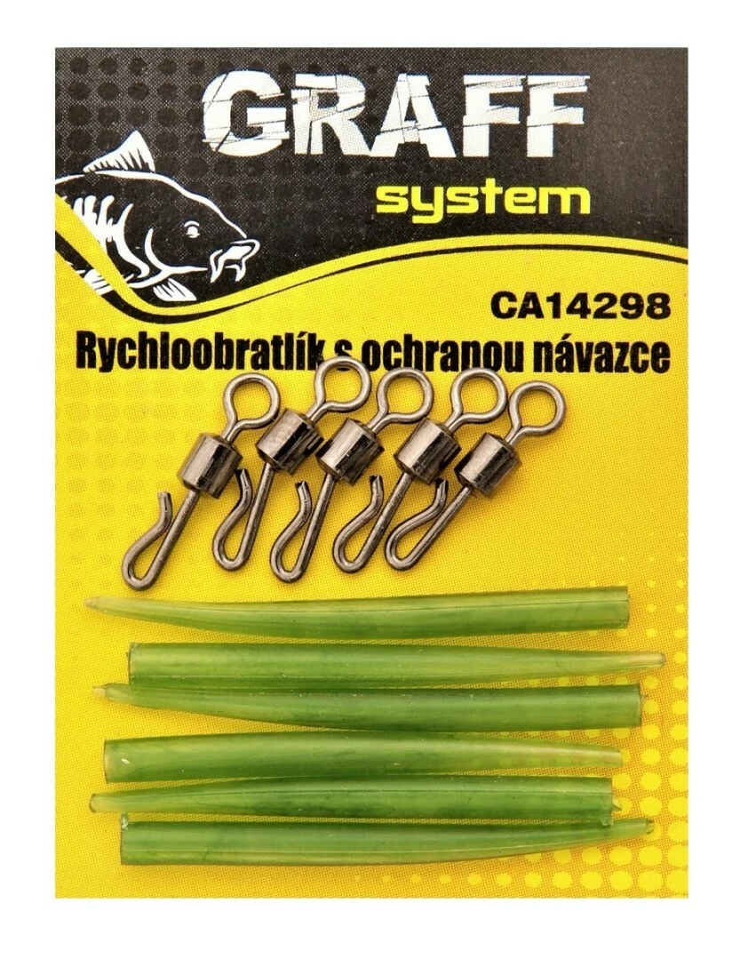 Rychlo-obratlík s ochranou návazce -tmavě zelený. Balení obsahuje 5ks rychloobratlíků a 5ks ochrany proti zamotání.
