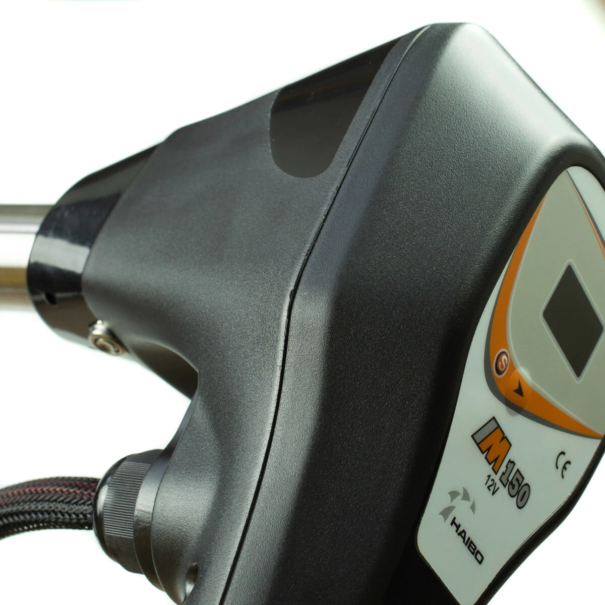 Haibo M150 je vysoce kvalitní a velmi výkonný elektromotor. Je na jednu 12 V baterii, má tah na vrtuli 70 LBS, což z něj dělá nejsilnější 12 V motor na trhu, porovnatelný 3 HP motory. Takový výkon umožňuje vysoce efektivní Brushless (bezkartáčová) motorová jednotka a špičková hydrodynamická ergonomie. Tato technologie je velmi nákladná, proto se u elektromotorů této třídy používá jen zřídka. Její výhodou je však výrazně delší životnost a mnohem vyšší výkon, a to až o 15 - 20% oproti běžně používaným Brush (kartáčovým) motorům. Díky tomu se větší část celkového výkonu motoru mění na rotační sílu a méně se ztrácí jako teplo. Proto má 70 LBS Brushless motor srovnatelný výkon s běžnými 3 HP motory. Maximální nominální výkon je 780 wattů. U podobně silných motorů bylo nutné používat dvě propojené baterie, nebo jednu 24 V. Tento motor to zvládne s jednou 12 V. Přesto nemá nijak vysokou spotřebu. Při úsporném ježdění vydržíte jezdit i 5 – 7 dní na jednu 100A baterii, samozřejmě, při vyšším zatížení (vlny, delší vzdálenosti,…) ji vybijete za 2 až 4 dny. M150 má výborné zpracování, silnou třílistou vrtuli z pevného plastu, jištěnou maticí a závlačkou, nerezovou nohu o délce 91 cm, výsuvnou rukojeť a digitální číslicový displej, který informuje o stavu baterií. Dále bytelný držák na zadní zrcadlo lodi a také šikovné sklápění páčkou, které při přistávání zvládnete jednou rukou. M150 váží 11,5 kg, má plynulou regulaci rychlosti dopředu a dozadu a k tomu speciální SPORT mód pro rychlou jízdu. Obrovskou výhodou je též tichost, která je zcela nesrovnatelná s motory o podobném výkonu. Třešničkou na dortu je USB slot (dobíjení mobilu, GPS,…) s vodotěsnou zátkou, který najdete pod hlavou motoru.