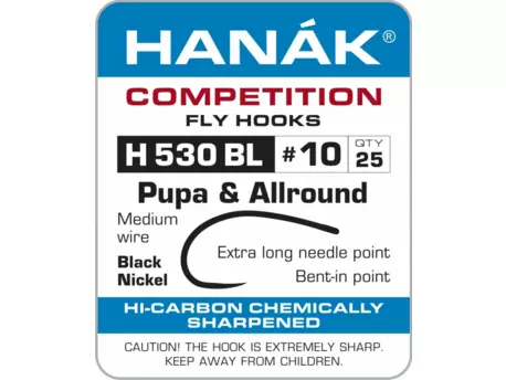 Velmi ostrý pupový háček s rovným očkem a s hrotem mírně přihnutým dovnitř. Lze také použít na mokré či suché mušky a různé pakomáry. Další info