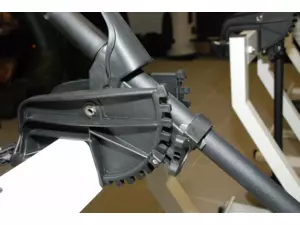 Sklápění celého motoru je ovládáno praktickým dotykovým mechanismem.