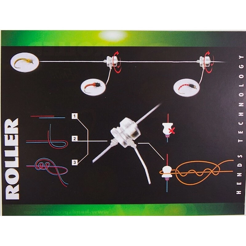 Je důležité, udělat uzel podle návodu na kartičce nebo i jíný, který zamezí navlečení Rolleru na uzel. Možno použít na vlasce o průměru 0,10 až 0,22 mm.