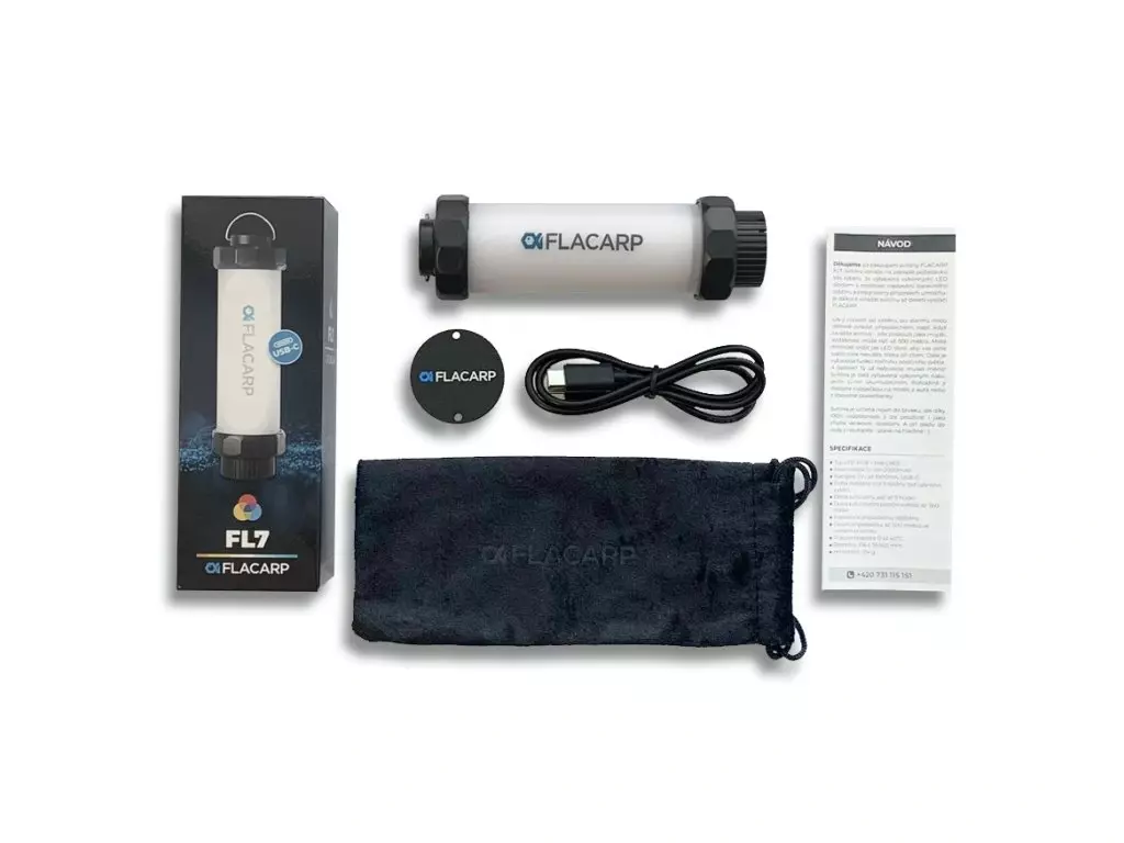 Vodotěsné LED světlo FLACARP FL7 s příposlechem a USB-C konektorem Multibarevné, vodotěsné LED světlo s vestavěným příposlechem, nabíjecím Li-Ion akumulátorem, USB-C a režimem dlouhé doby svitu... Nová verze oblíbeného vodotěsného, RGB světla s příposlechem FLACARP FL7. Nyní s USB-C konektorem a možností nastavení kromě studené bíle i teplejšího odstínu bílé. Samozřejmostí je i funkce pozičního světla s extrémní dobou svitu až 360 hodin. Funkce, která má uplatnění zejména pro označení lovného místa při nočním rybolovu. Multibarevné LED světlo. Studenější i teplá bíla, zelená, červená, modrá, fialová ... zvolte si barvu a jas, které vám vyhovují. Integrovaný bezdrátový příposlech s dosahem až několik set metrů. Světlo se vám rozsvítí po záběru (vyhodnocuje signál z hlásičů FLACARP), rozsvítíte jej na dálku svým příposlechem (dálkové ovládání s dosahem až 1km!) a nebo jej využívejte jako běžné LED světlo. Funkce nočního pozičního světla s extrémní výdrží až 360 hodin! Přenos barvy, která je nastavena na hlásiči. Máte na hlásiči nastavenou třeba fialovou? Není problém - stejnou barvou se vám při záběru rozsvítí i LED světlo. Hned víte, od kterého hlásiče máte záběr. 100% kompatibilita. Spolupracuje se všemi bezdrátovými produkty FLACARP_ hlásiči, alarmy, příposlechy ... Žádné baterie! Integrován výkonný nabíjecí Li-Ion akumulátor. Jednoduše dobijete běžnou nabíječkou na mobil, z auta nebo libovolné powerbanky proudem až 1000mA. Opravdu 100% vodotěsná konstrukce. Spadne vám svítilna do vody - nevadí, dovnitř se nedostane ani kapka vody. Testováno dlouhodobě 1,5 metru pod vodou. Navíc svítilnu "neutopíte", protože při pádu do vody plave na hladině. Naše špičková elektronika, vlastní vývoj a výroba v ČR, certifikace v akreditované zkušebně - to vše vám zajistí spolehlivost a pružnou reakci na vaše požadavky. Jednoduché přichycení. Svítilna je vybavena silným neodymovým magnetem. Jednoduše přichytíte k libovolné železné konstrukci nebo zavěsíte pomocí poutka. Součástí balení je také kovový protikus k magnetu, pro uchycení například na látku bivaku. Vodotěsná konstrukce předurčuje toto malé, ale velmi výkonné LED světlo nejen pro použití v bivaku, ale může sloužit i jako venkovní osvětlení. Uvnitř zabudovaný přijímač bezdrátového příposlechu umožňuje dálkové rozsvícení signalizátory záběru FLACARP, tedy při záběru. Lze jej dálkově ovládat i příposlechem - na dálku zapnout / vypnout / ztlumit jas. Může být využito i jako maják při zavážení krmiva - na dálku si rozsvítíte světlo označující vaše lovné místo. Světlo můžete spárovat nejen s hlásiči, ovládat nejen příposlechem, ale lze ho propojit také s alarmy FLACARP! Je vybaveno výkonnými bílými LED CREE a RGB diodami, můžete si tedy zvolit další barevné odstíny. Například v noci použít méně rušivé červené světlo, modré, zelené ... Lahůdkou je možnost rozsvícení stejné barvy, jaká je nastavena na hlásičích. Takže v noci můžete příposlech klidně vypnout a již po rozsvícení světla poznáte, který hlásič má záběr. Světlo je vybaveno silikonovými těsněními a je vodotěsné. Můžete jej používat jako venkovní osvětlení a není třeba se obávat deště. Když spadne do vody - nevadí. Světlo je velmi lehké a na vodě plave - nemusíte se bát, že jej utopíte. Již nikdy nebudete měnit baterie_ uvnitř zabudovaný akumulátor s velkou kapacitou 2000mAh snadno dobijete z běžné nabíječky na mobil, z auta nebo z libovolné powerbanky. Snadno si tlačítkem nastavíte barvu, která vám vyhovuje - ta zůstane uložena jako výchozí. Po dalším zapnutí je tedy automaticky nastavena. Změna barev je velmi snadná, celkové ovládání intuitivní. Souhrn vlastností, technické údaje: Typ LED_ RGB + bílé CREE® Barva LED_ bílá, teplá bílá, červená, zelená, modrá, fialová + přenos barvy ze signalizátorů FLACARP Akumulátor: vestavěný Li-Ion 2000mAh Nabíjení: 5V / až 1000mA, USB-C Doba nabíjení: cca 3 hodin (od úplného vybití) Doba svitu (plný jas): až 9 hodin Doba svitu (režim dlouhé doby svitu - noční poziční světlo): až 360 hodin Frekvence příposlechu: 868MHz Spolupracuje s výrobky FLACARP Dosah příposlechu: až 500 metrů ve volném prostoru Pracovní teplota_ 0 až 40? Vodotěsná konstrukce, 100% odolnost proti dešti i krátkodobému potopení (pád do vody) Rozměry: 136 x 36 (42) mm Uchycení (zavěšení) pomocí poutka nebo silného neodymového magnetu, nově i s kovovým protikusem Hmotnost_ 124 g Obsah balení: LED světlo FLACARP FL7 Nabíjecí kabel USB Ochranná kapsička Kovový protikus k magnetu Návod Uvedené technické údaje délky svitu a nabíjení se mohou odlišovat dle stavu akumulátoru, způsobu používání a okolní teplotě.