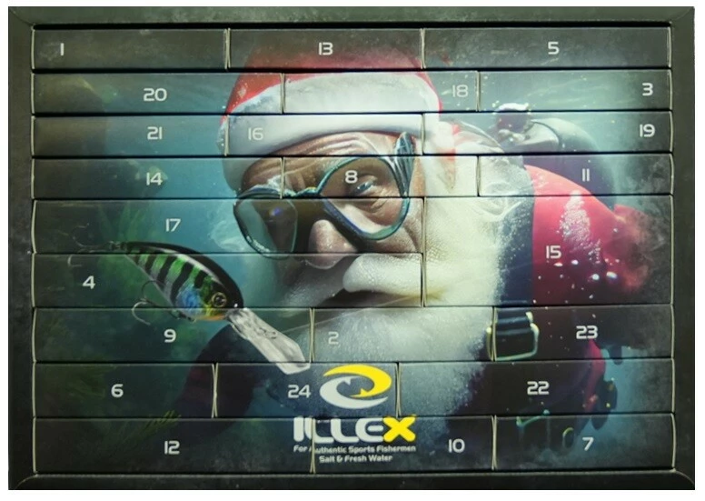 Ideální dárek pro všechny milovníky lovu dravců na přívlač. Zažijte každý prosincový den až do Vánoc překvapení v podobě nástrahy ILLEX. V kalendáři najdete woblery, gumové i jiné nástrahy a další překvapení, která potěší a zároveň pomohou k hezkým úlovkům. Nástrahy byly pečlivě vybrány tak, aby z nich měli radost lovci štik, candátů i okounů.