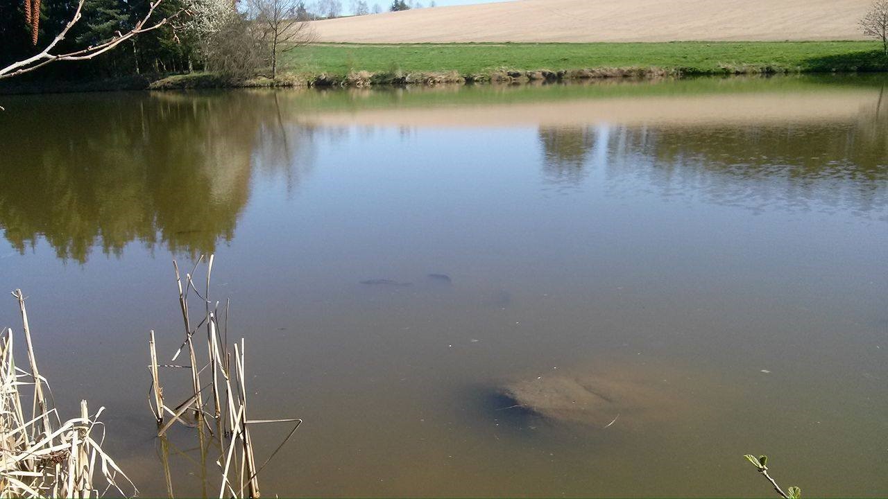 Foceno z prvního zakrmovací dne. Je čas! Je čas vyrazit k vodě a doufat, že zakrmování zafunguje! Ještě než nasednu do auta, standardně vyvenčím pejska a hurá, jedeme! Při příjezdu k vodě, mě ale čeká velké zklamání. Po příjezdu jsem si připadal, jako kdybych přijel na závody, hlava na hlavě, která seděla a hladově koukala do vody. Díky bohu Sv. Petr stál při vodě a daroval během dopoledne, podle mých počtů 24 rybářům, celkem čtyři ryby. Na mém místě seděl starší pán, který chytal na rohlíček a nic mu nepřišlo. Já byl nucen jít na úplný okraj rybníku, kde je hloubka vody cca 1m, dno plné překážek padlých větví a různých porostů, nevzdal jsem se a zkusil jsem to. Bohužel, jsem během čtyř hodin viděl jednou zatáhnout, proto jsem to zabalil a se zklamáním jel domů … Bylo by mi velmi blbé, dávat jsem článek bez jakékoliv ryby, rozhodl jsem se o přídavek a podělím se s Vámi krásou, která nás láká k vodě. Tyto snímky jsou z mého zakrmovacího místa, foceno ještě před prvním zákrmem.