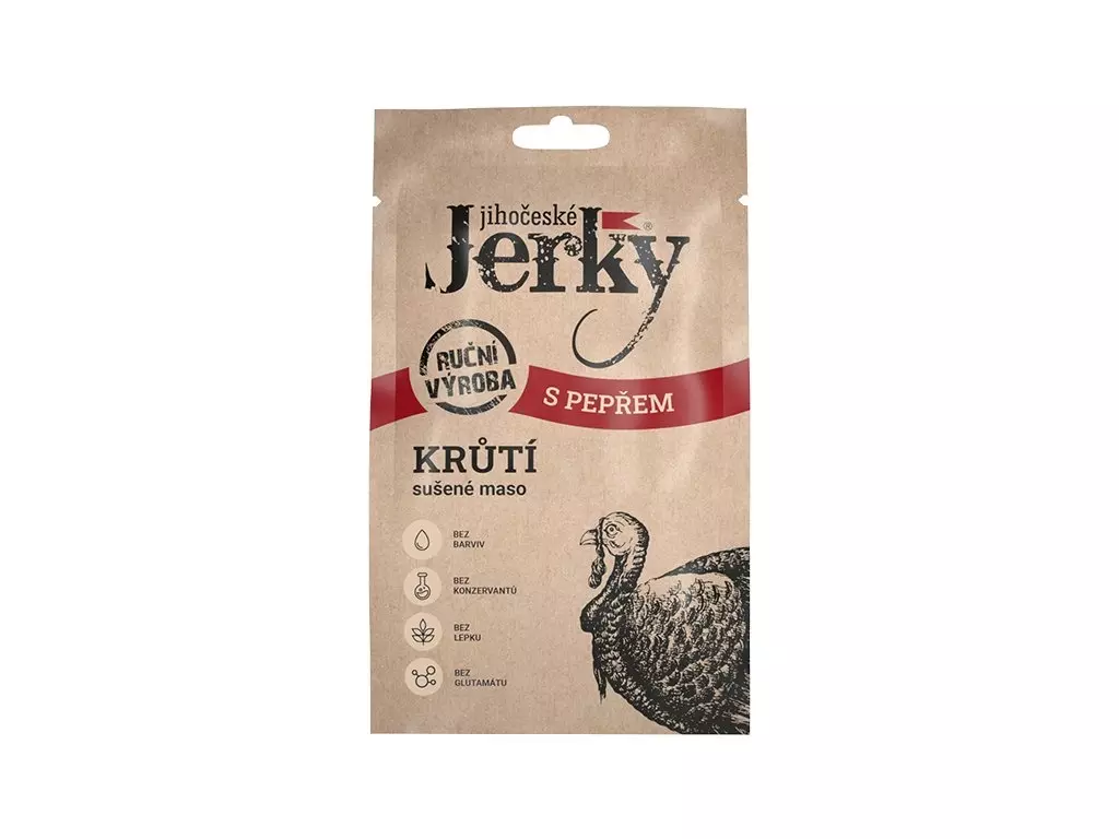 Skvělá chuť sušeného, zauzeného krůtího masa z českých chovů. Vyrobeno ze 100% čisté krůtí svaloviny.