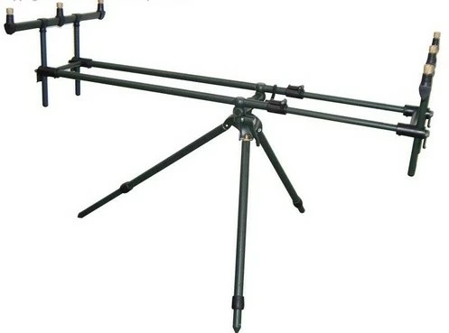 Duralová konstrukce v olivové barvě a širším průměru zajišťuje vysokou pevnost při zachování nízké hmotnosti. Stojan má výškově laditelné všechny tři nohy a podélně středovou část. Robustní středový díl je osazen háčkem, který lze při větru zatížit. Možnost použití na dva až tři pruty. Součástí stojanu je samozřejmě plně polstrovaná přenosná taška, včetně příhrádek na díly stojanu. Výborná variabilita tohoto stojanu v poměru se super cenou.