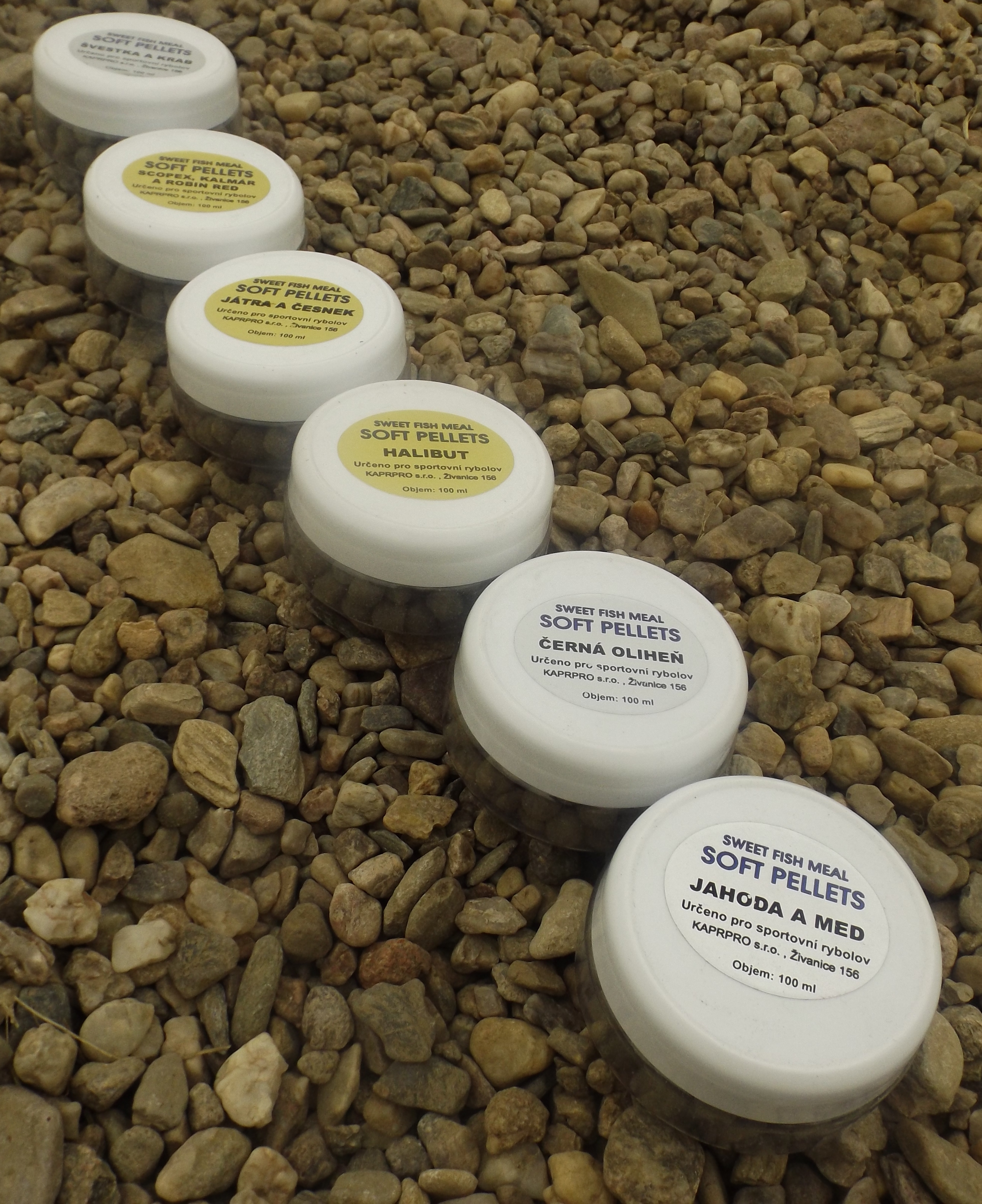Měkčené peletky SOFT PELLETS firma KAPRPRO vyrábí hned v 6 příchutích. Rybáři tak mají dostatečně širokou škálu výběru zajímavých chutí a vůní. K dispozici jsou klasické masové příchutě jako HALIBUT nebo ČERNÁ OLIHEŇ. Zajímavé jsou pak ale kombinace nejrůznějších esencí. Milovníci sladkých vůní si jistě oblíbí kombinaci JAHODY s MEDEM nebo SCOPEX s KALAMÁREM a ROBIN REDEM. Nejzajímavější kombinací podle našeho názoru je ale JÁTRA S ČESNEKEM. Pojďme si teď zmíněné nástrahy blíže představit.