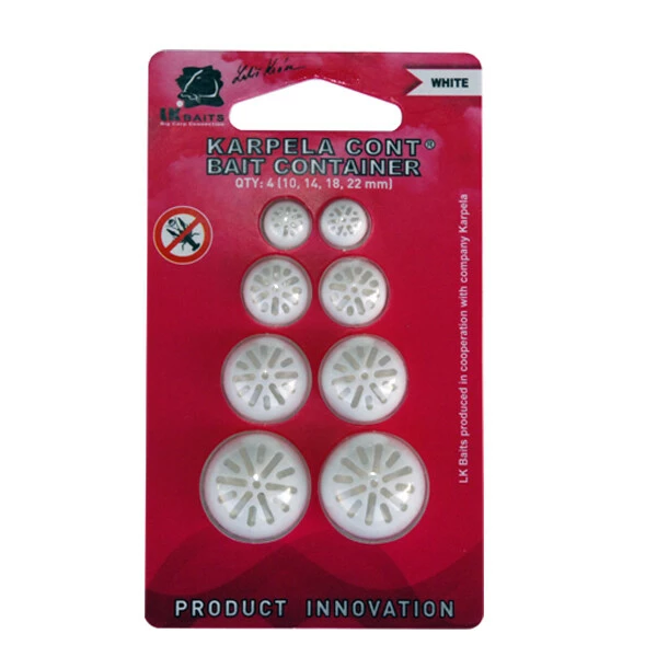 Naprosto inovativní produkt ve světě rybařiny, který vznikl ve spolupráci LK Baits – Lukáš Krása a Karpela Cont. Díky tomuto produktu můžete nastražit jakoukoliv nástrahu dle Vaší fantasie. Ať už do našeho kontejneru dáte plovoucí pastu, konopí, krmítkový mix, červy nebo patentky, vždy budete mít neodolatelnou nástrahu. Máte problém s raky nebo želvami? Nebo bílou rybou a nebo dokonce sumečky americkými? Žádný problém! S Karpela Cont LK Baits máte po problémech. Už se Vám nikdy nestane, že jste probděli celou noc bez záběru a ráno jste stáhli návazec bez nástrahy.