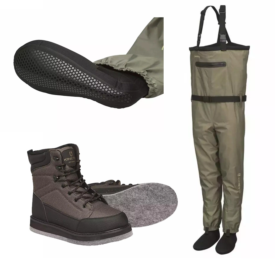 Kinetic SET prsačky ClassicGaiter St. Foot Olive + boty RockGaiter ll Wading Boot Olive FILC