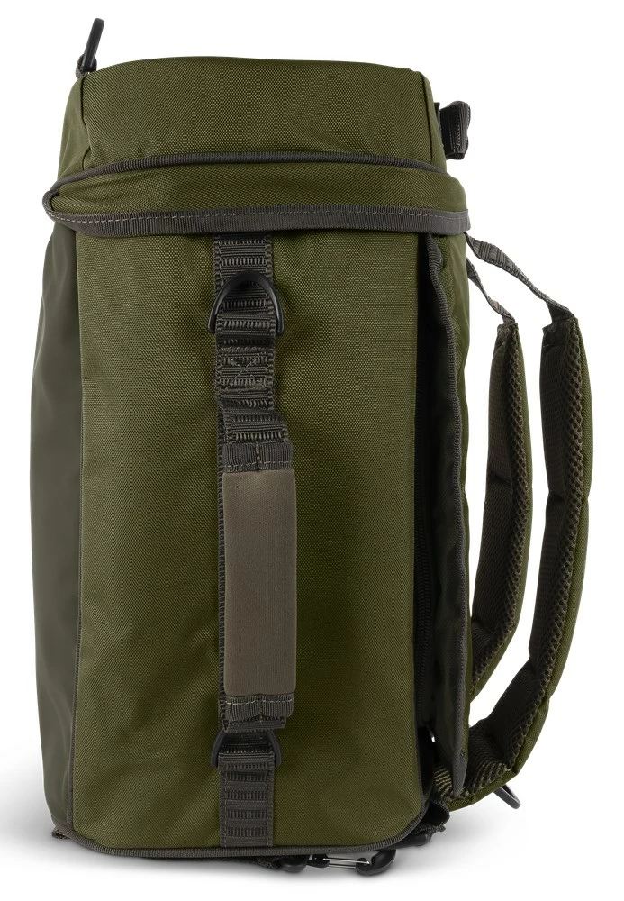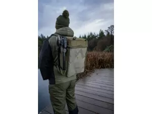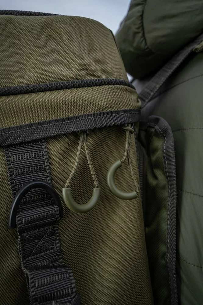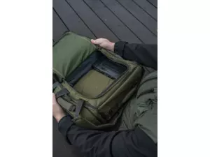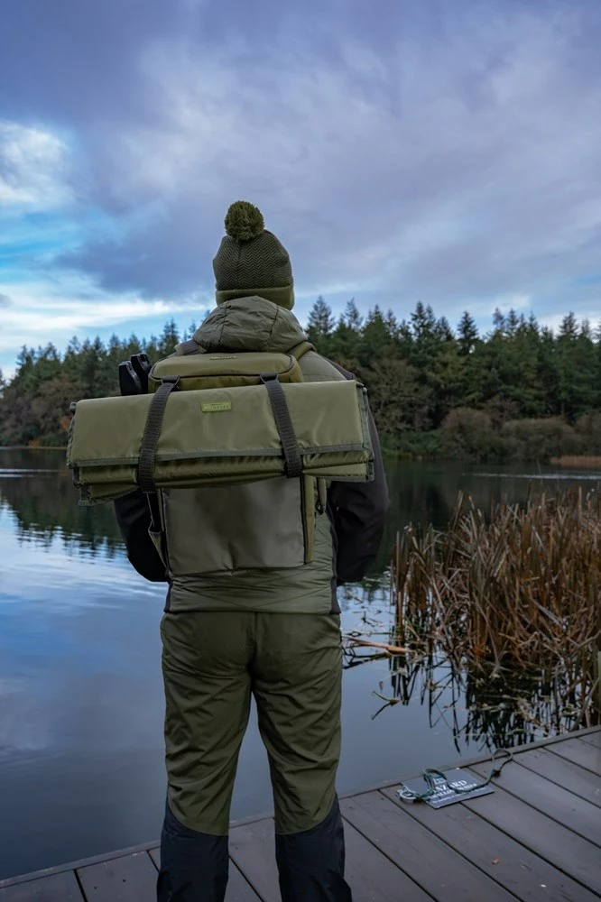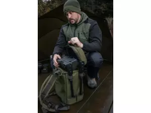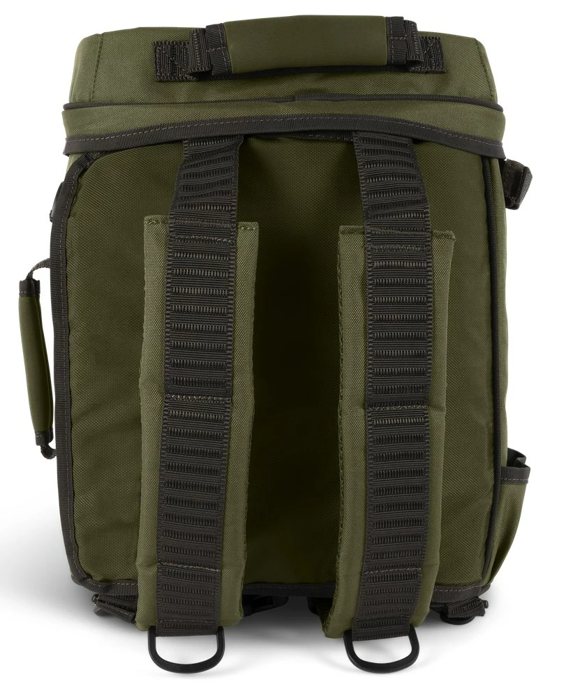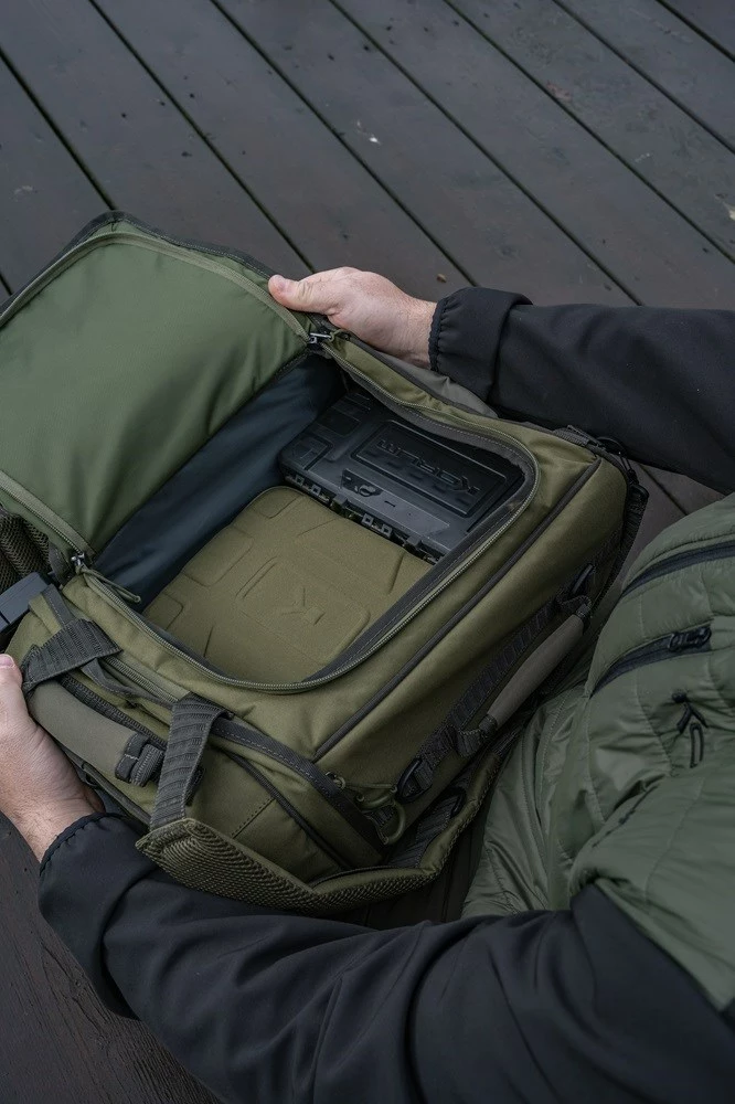Batoh se otevírá jako Ruckbag, což usnadňuje přístup k vašemu rybářskému náčiní. Nabízí dva držáky na vidličky/podběrákovou rukojeť na boku, horní kapsu kompatibilní s Tackle Blox a mimořádně dobře polstrované ramenní popruhy.