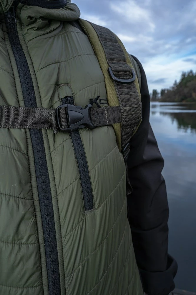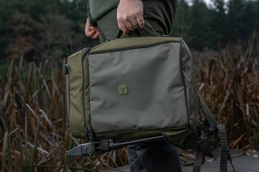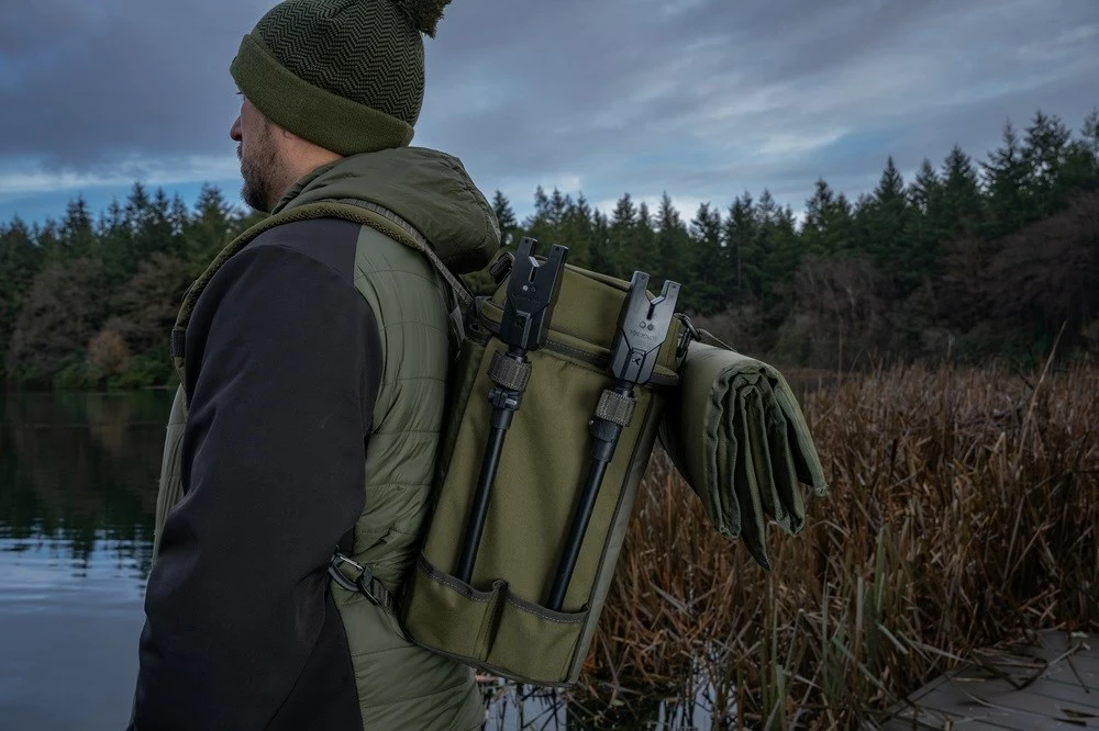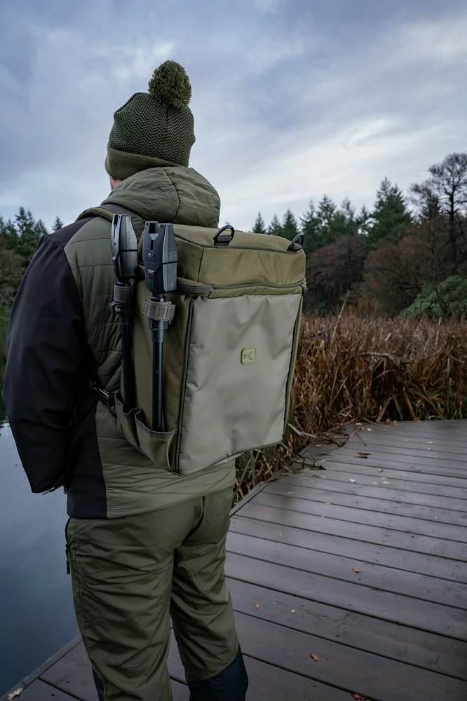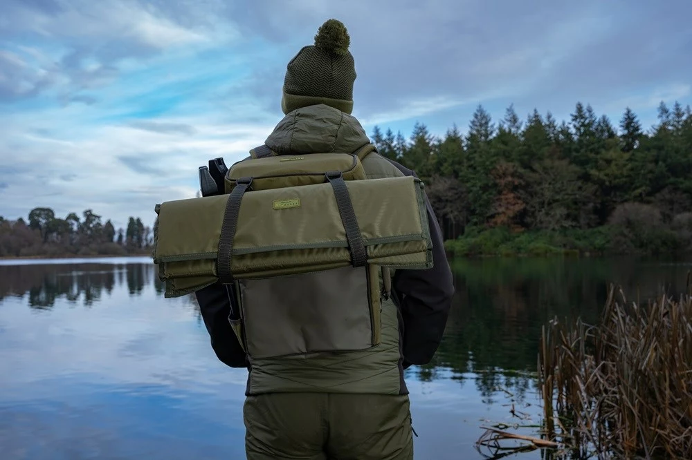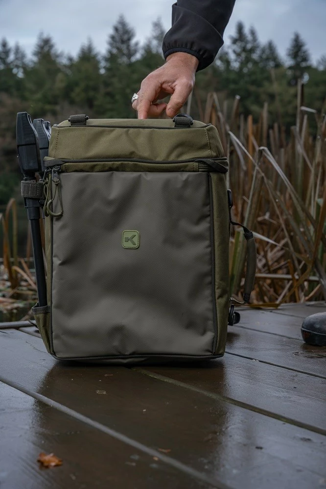 Batoh se otevírá jako Ruckbag, což usnadňuje přístup k vašemu rybářskému náčiní. Nabízí dva držáky na vidličky/podběrákovou rukojeť na boku, horní kapsu kompatibilní s Tackle Blox a mimořádně dobře polstrované ramenní popruhy.