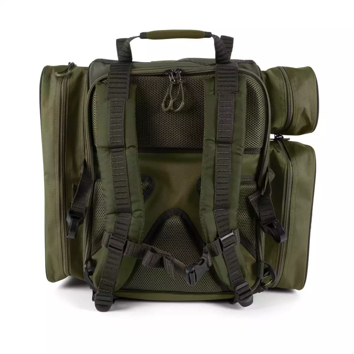 Naše proslulá konstrukce s háčkem na přenášení křesel zůstává zachována, ale nyní je nastavitelná tak, aby se do ní vešlo více velikostí křesel. Snadno tak přenesete křeslo a batoh jako jeden celek. Boční kapsy jsou strategicky rozmístěny a dimenzovány pro maximální využitelnost, zatímco vyšší hlavní přihrádka poskytuje dostatek prostoru pro váš Tackle Blox a další nezbytné věci. Extrémně dobře polstrované ramenní popruhy jsou nastavitelné a pro větší bezpečnost jsou vybaveny hrudním popruhem.