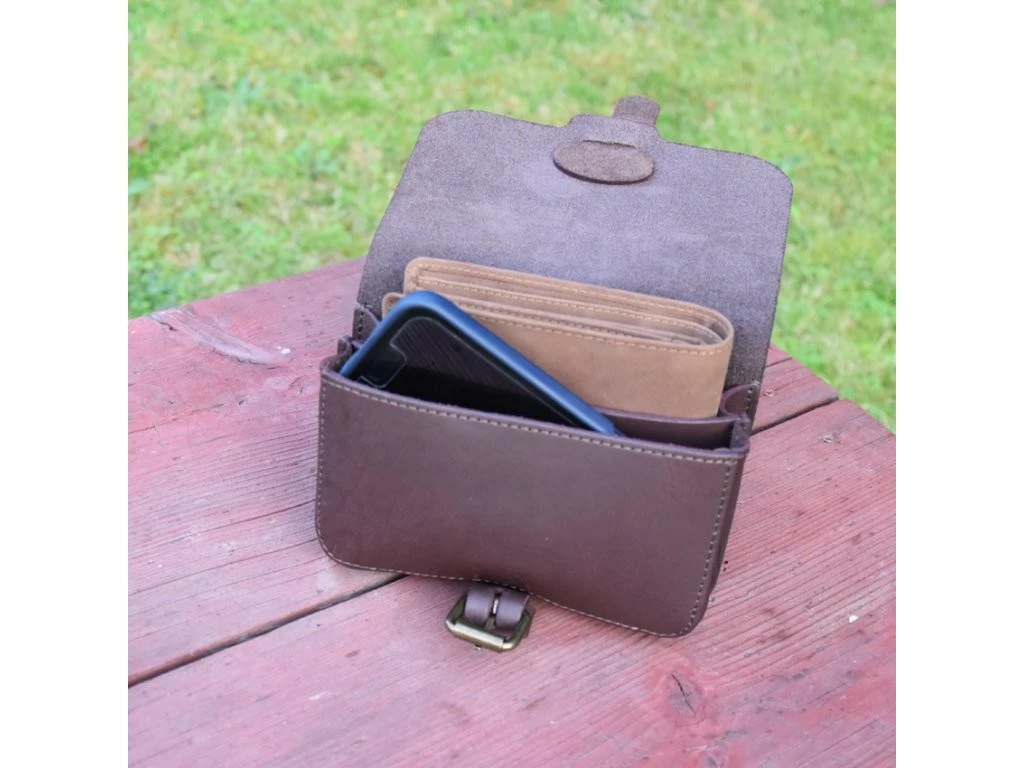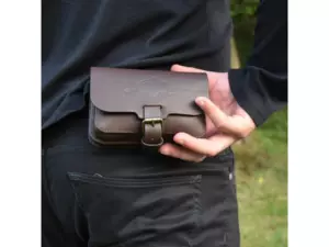 Kožená hnědá kapsa s hnědým prošívání je z pravé kůže! Zapínání je na přezku, zloděj nemá šanci. Vnitřní část vyplňují dvě kapsy s pevnější přepážkou. Kvalita zpracování je prvotřídní. Tuto kapsu si prostě zamilujete.