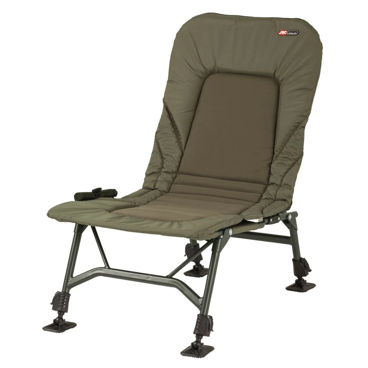 Stealth Recliner Chair je plně polohovatelné (nohy i opěradlo) pohodlné křeslo. Má plně výškově nastavitelné nohy. Díky teleskopickým nastavitelným nohám je přizpůsobitelné jakémukoliv terénu. Na konci nohou se nacházejí velké ploché JRC koncovky proti zapadávání do půdy.