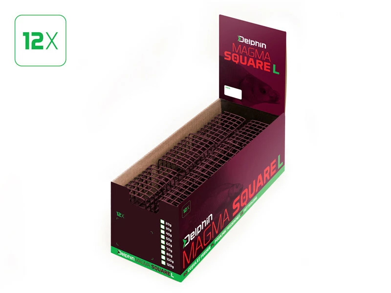 Jedinečné feederové krmítko navržené společností Delphin v unikátním MAGMA designu. Základ krmítka tvoří košík hranatého tvaru, který je vyroben z pevného drátu. Ten zabraňuje protlačení během plnění krmivem, které se ve vodě z něj výborně uvolňuje. Na spodní části se nacházejí čtyři špičaté výstupky, díky kterým krmítko lépe drží na dně a je tak omezeno jeho posouvání hladovými rybami, či říčním proudem. Osazené je obratlíkem na prodloužené pohyblivé části pro pohodlné upevnění k feederové sestavě. V nabídce je v různých gramážích a taktéž ve třech velikostech: S, M a L. Každý příznivec feederu si tak vybere to správné pro danou situaci a typ vody.