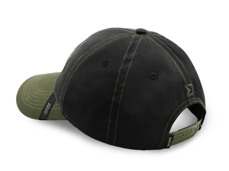 Stylová kombinace černé barvy s olivově zelenou a originálním motivem kapra – OutLINE, vytváří svěží design, který sedne doslova každému. Kšiltovku můžete využít také na toulkách přírodou, lovu, či ve městě.