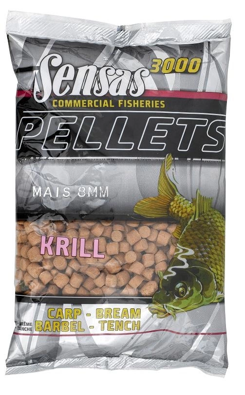 Kukuřičné pelety Sensas 3000 krill-korýš 14mm 800g