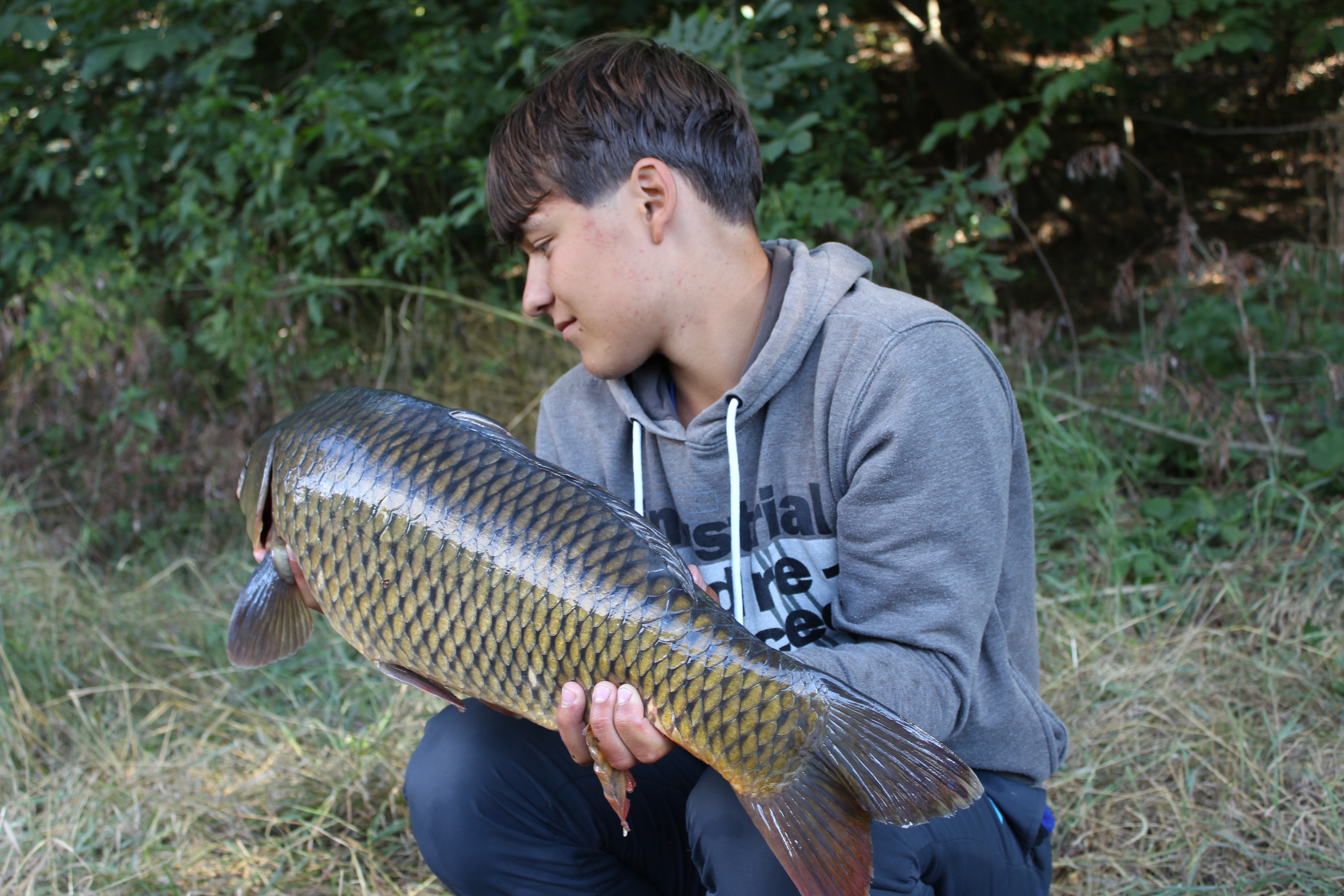 Vyrazil jsem k úseku Labe který mám kousek od mého bydliště. Měl jsem čas od pondělí do středy a pak ze čtvrtka na pátek. V pondělí jsem přišel okolo poledne. Rozbalil jsem vše potřebné, nakrmil jsem a rychle nahodil. První kontakt přichází až pět minut před půlnocí - malý cejn. Už ani nenahazuji a vytahuji druhý prut. Ráno ve čtyři nahazuji a v pět mně probírá krásná jízda - kapr 70 cm na boilie SVS, fotím samospouští a rychle pouštím. Další záběr přichází po krátkém dešti - vysoký lysec 48 cm. Okolo druhé hodiny přichází další záběr na SVS - další kapr 70 cm. Do večera se nic neděje a proto si jdu lehnout. Pár minut před půlnocí mně probírá pár pípnutí, říkám si že to bude zas cejn. To jsem se ale spletl protože po souboji končí na podložce kapr 74 cm kterého ukládám do saku a volám kamarádovi aby ráno přišel a vyfotil mně. Jdu spát a ráno zas nahazuji. Přichází kamarád i s mladším bratrem. Brácha nastražuje halibut peletu a během chvíle vytahuje kapra 55 cm. Fotíme se společně a obě ryby pouštíme. Posledních pár hodin se nic neděje a proto balíme a já se těším na čtvrtek kdy se sem zas vrátím... Ve čtvrtek jsem u vody až odpoledne. Nahazuji a na jeden prut krmím kukuřicí a na druhý halibut peletami. Nastražuji dvě zrnka kukuřice a malý kousek pěny na jeden prut a na druhý boilies SVS. Za hodinu přichází opatrný záběr na kukuřici. Po nádherném souboji mám v podběráku svého prvního většího amura - 80 cm. Bohužel do konce výpravy nic nepřichází ale i tak jsem si chytání užil... Ať se vám daří
