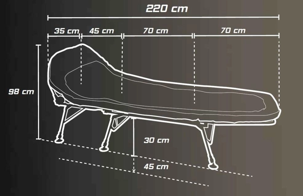 Nastavitelné nohy zabezpečují pohodlnou možnost umístění v nerovném terénu. Hlavovou část je možné nastavit pomocí pevného kloubu posunutého více do přední části, aby se zvýšilo pohodlí a kloub netlačil na tělo. Díky nové, moderní inovaci jsou lehátka Starbaits Mammoth funkčnější, pohodlnější, stabilnější a s mnohem vyšší nosností jako porovnatelné druhy.