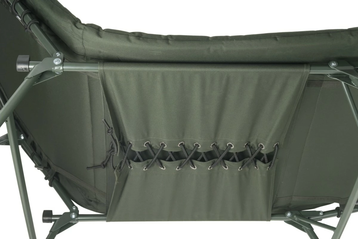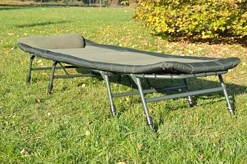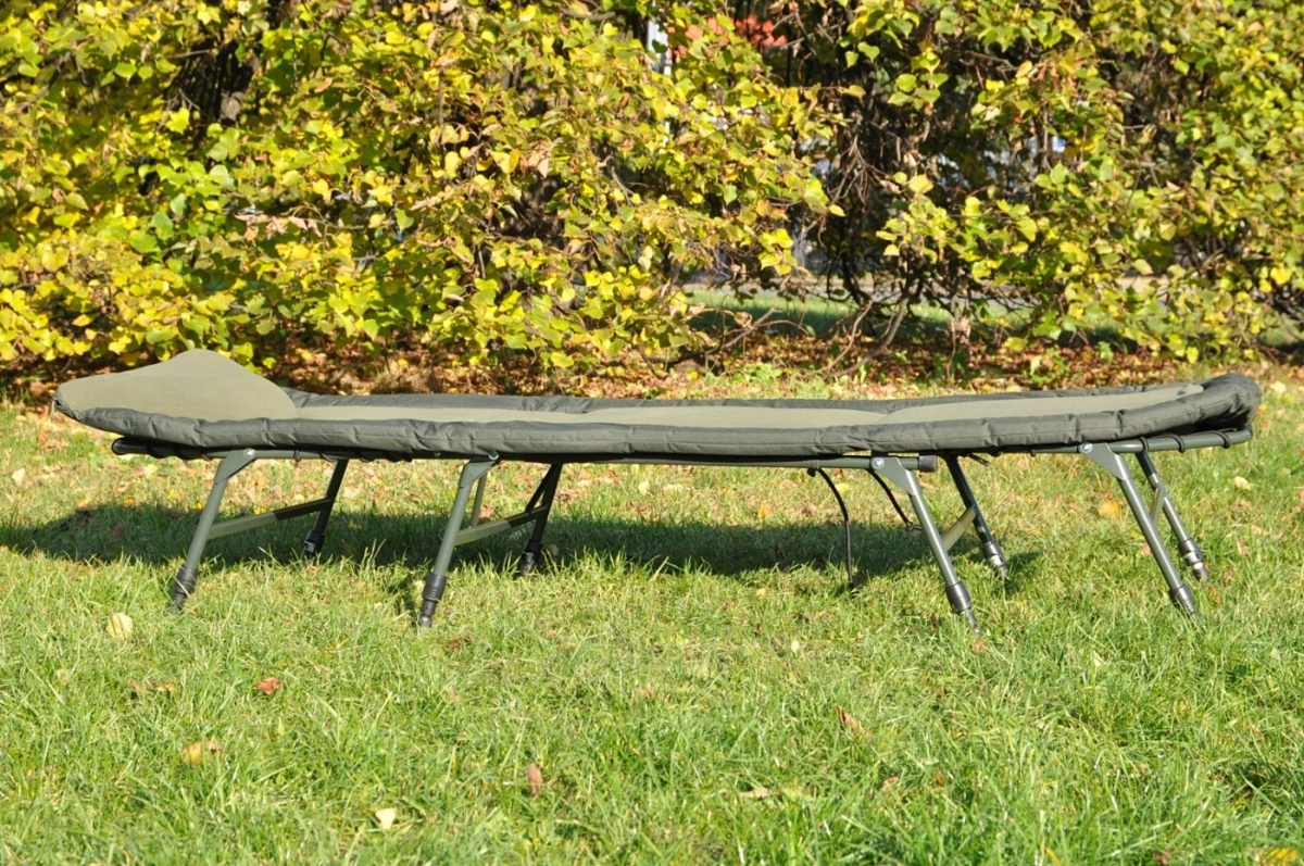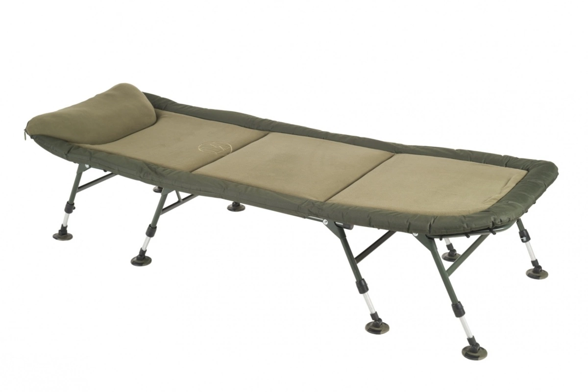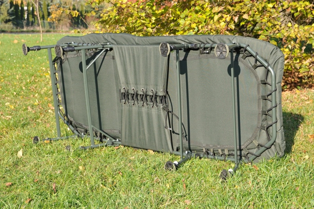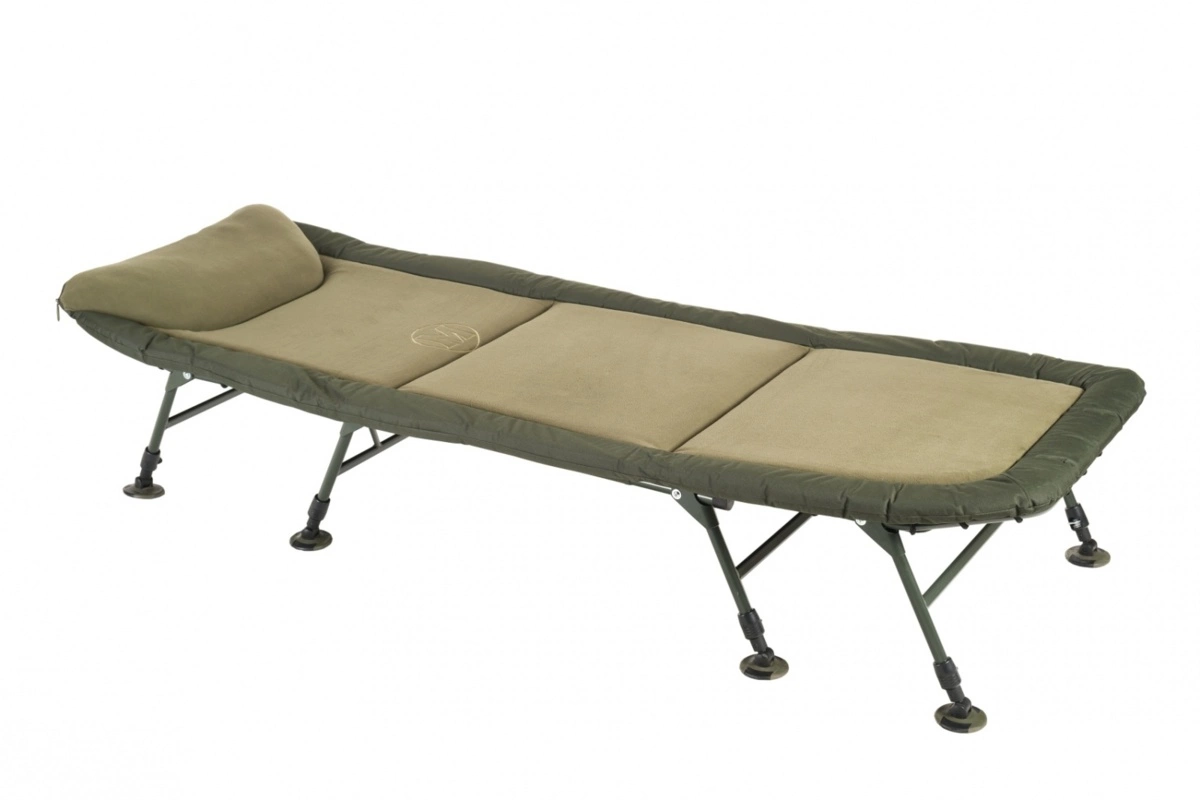Ve vrchní části je integrovaný velký a pohodlný polštář. Lehátko je vybaveno pokročilým napínacím systémem pro účinnou regulaci tuhosti matrace. Osm teleskopických nohou je osazeno velkými patkami a spolehlivým systémem aretace.