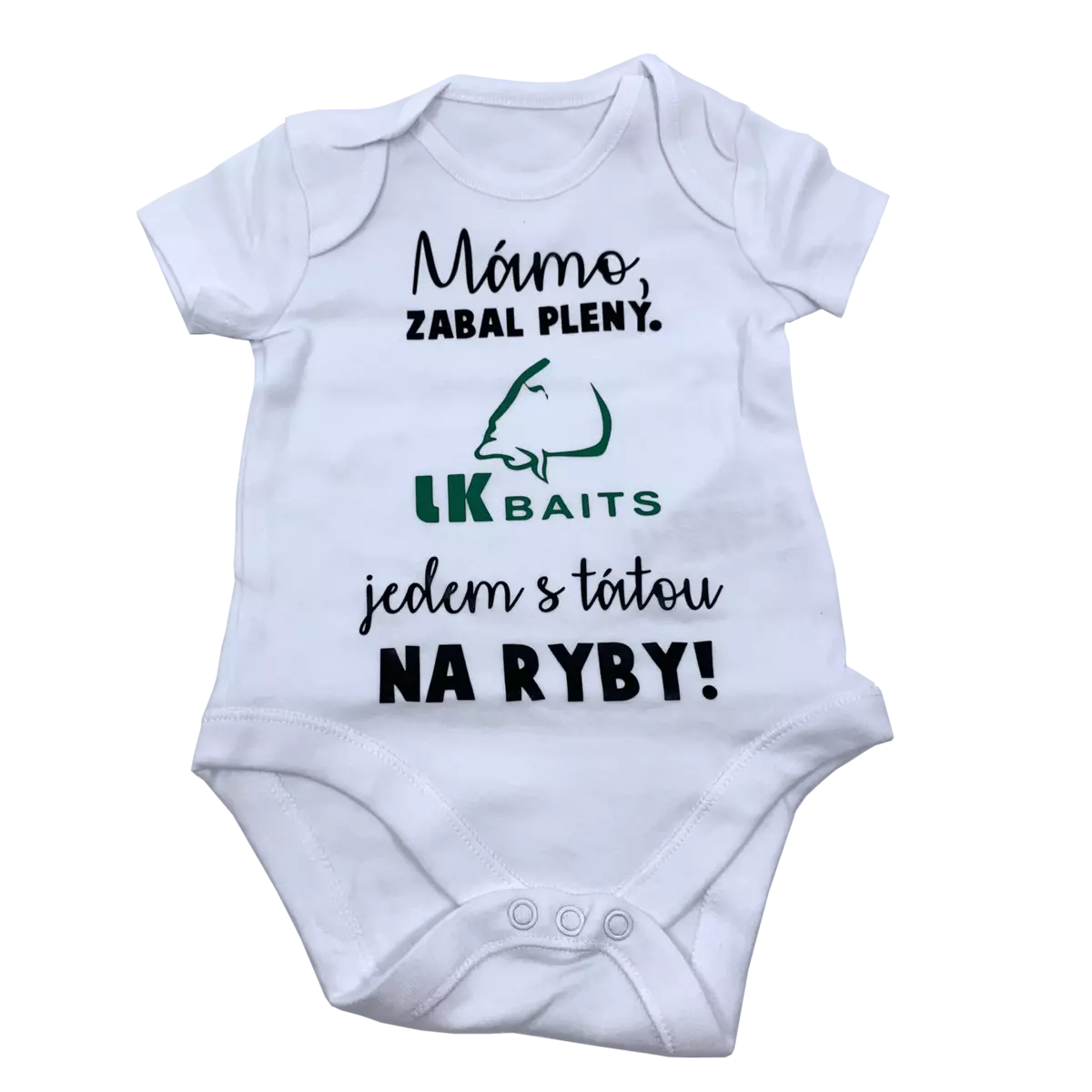 Oblečení máme nově i pro nejmenší rybáře a fanoušky LK baits. Kojenecké body s krátkým rukávem je vyrobené ze 100 % bavlny s nápisem Mámo zabal pleny - jedem s tátou na ryby. Zajistí miminku maximální pohodlí i při celodenním nošení. Body má praktické zapínání na patentky mezi nožičkami pro snazší oblékání a přebalování.