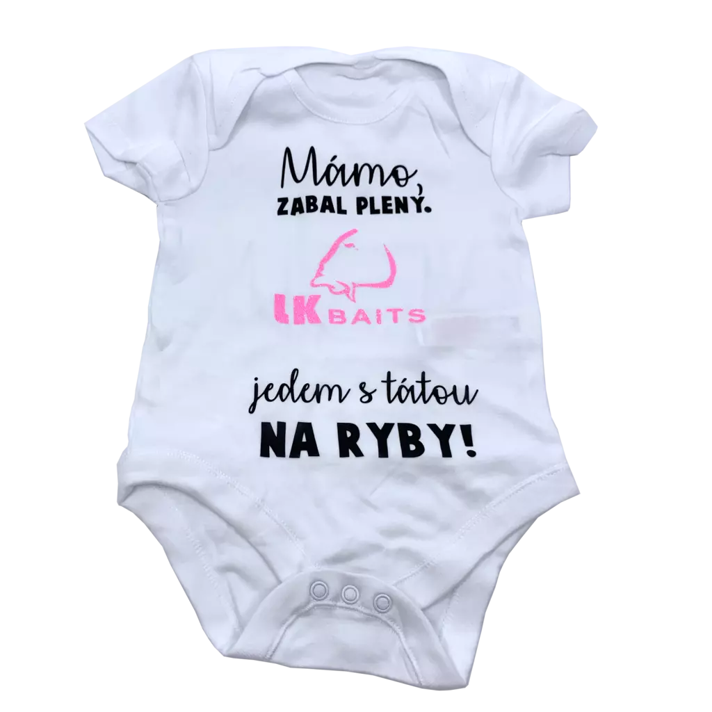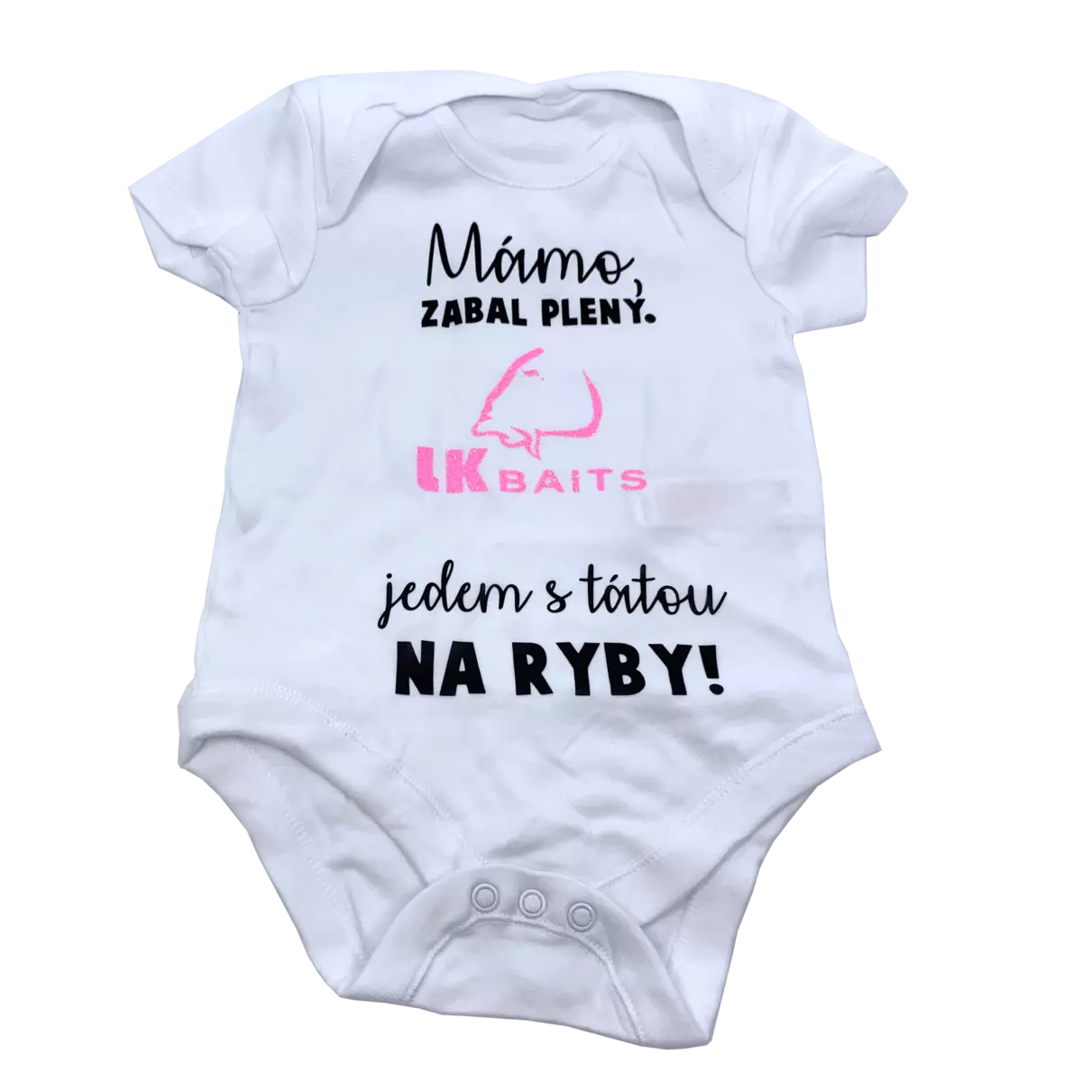 Oblečení máme nově i pro nejmenší rybáře a fanoušky LK baits. Kojenecké body s krátkým rukávem je vyrobené ze 100 % bavlny s nápisem Mámo zabal pleny - jedem s tátou na ryby. Zajistí miminku maximální pohodlí i při celodenním nošení. Body má praktické zapínání na patentky mezi nožičkami pro snazší oblékání a přebalování.