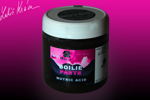 Boilie těsto (obalovačka) je velmi účinnou a rychlou nástrahou. Obalte boilie nebo partikl vrstvou naší speciální pasty a uvidíte jak jen účinné to je! Boilie těsto vyrábíme ze stejných ingrediencí jako boilie, ale s rozdílem dvounásobné dávky extraktů. Tím dokážete okamžitě upoutat pozornost ryb, jak při běžné kaprařině, závodech nebo zimních měsících. Pastu Vám nabízíme už připravenou v praktickém kelímku. Nemusíte se tedy s ničím míchat. Stačí odebrat požadované množství a rovnou použít. V kelímku nabízíme 250g velmi účinné boilie pasty! To vše za cenu, kterou Vám jiní poskytují při 100 - 200g! Tem LK Baits: „Boilie těsto má mnoho vyriant využití. Nejlepších výsledků jsme dosáhli, když jsme obalovaliplovoucí boilie. Tím jsme docílili kriticky vyvážené nástrahy, která byla povětšinou velmi úspěšná“. Pasta Vám na nástraze vydrží v závislosti na teplotě vody, ataku plevelných ryb či proudění vody. Pokud si přejete aby se pasta uvolňovala pomaleji, nechte ji na nástraze zaschnout. Pastu můžete nanášet i na jinou příchuť boilie, často to bývá ještě více účinné!