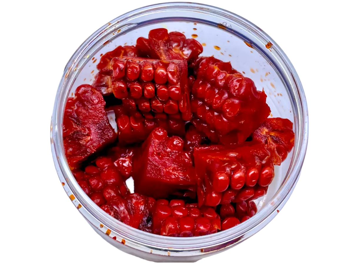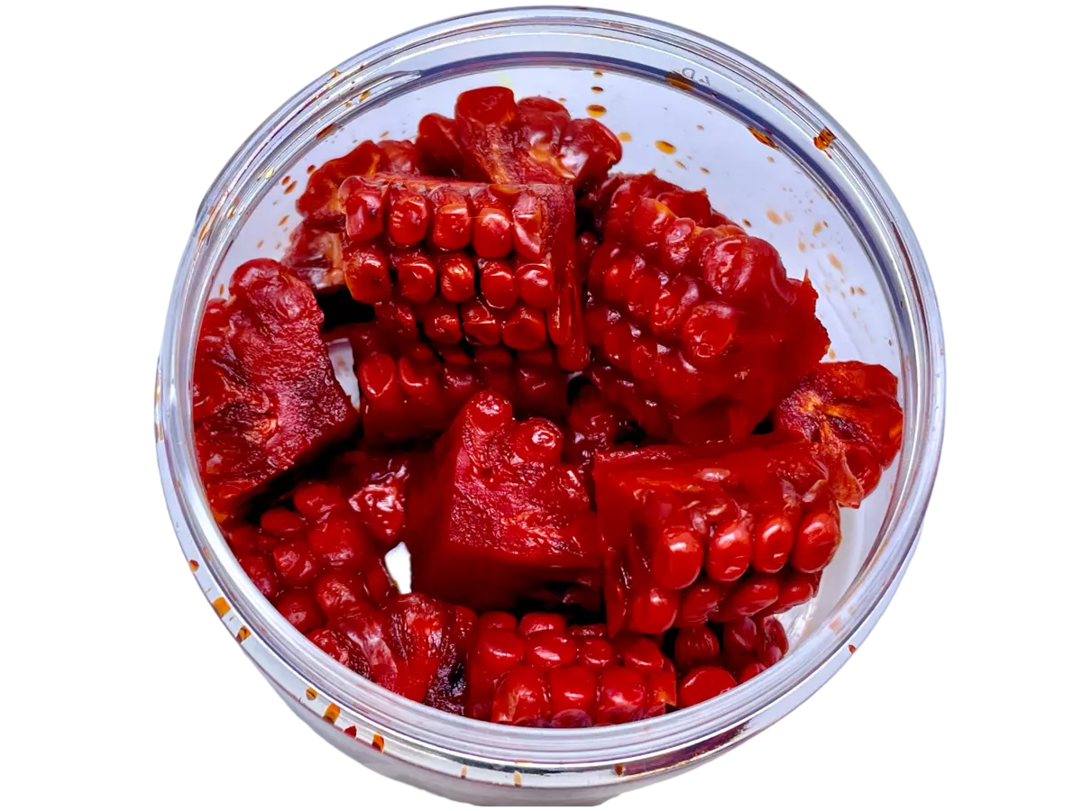 Nakládané kousky mladé kukuřice jsou velmi funkční nástrahou pro lov kaprovitých ryb. Kousky jsou vytažené z aromatických nálevů z aminokyselin, kde nějaký čas fermentovaly, tak aby byly pro ryby více atraktivní. Nástraha je zpracována tak, aby byla včetně dřevnaté části, která nástrahu vyvažuje a díky jednostrannému těžišti se i lépe zasékává. Co více, tato část dřevnaté nástrahy velmi dobře nasává naše speciální aroma a vylučuje ho pod vodou po velmi dlouhou dobu. Kapři budou také překvapeni jiným tvarem. Nástrahy se vyrábí ve třech velikostech S,M,L. Velikost S je pro feederové chytání, velikost M pro kaprové chytání a háčky č. 5- č.8 a Velká velikost L je určena pro lov kapitálních kaprů a háčky velikosti č.4 a více. Upozornění. Do nálevu používáme pouze přírodní konzervanty a někdy může docházet k silnější fermentaci, změně vůně, či barvy. Toto ovšem není na závadu. Jako podkladové krmení se nám nejvíce osvědčil partiklový mix, samostatná kukuřice a kukuřičné pelety.