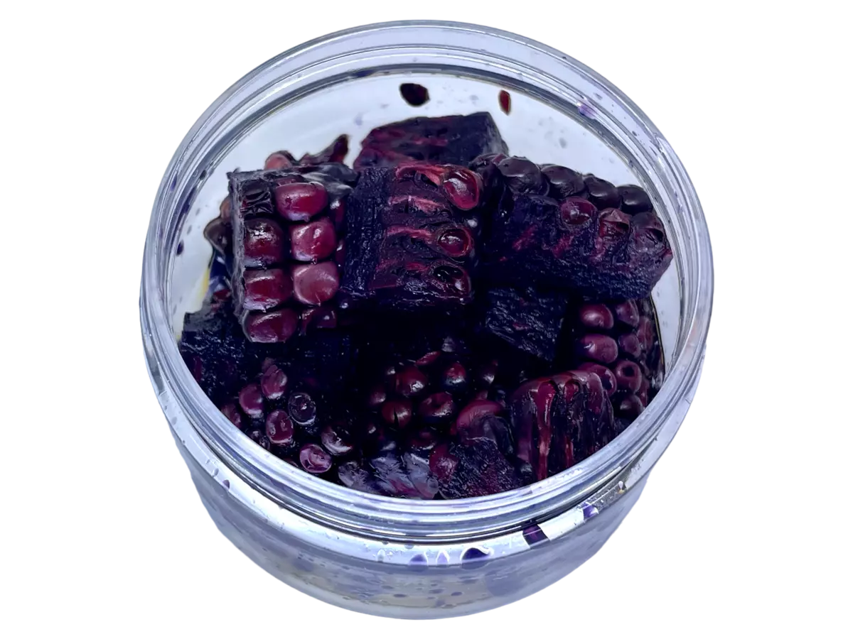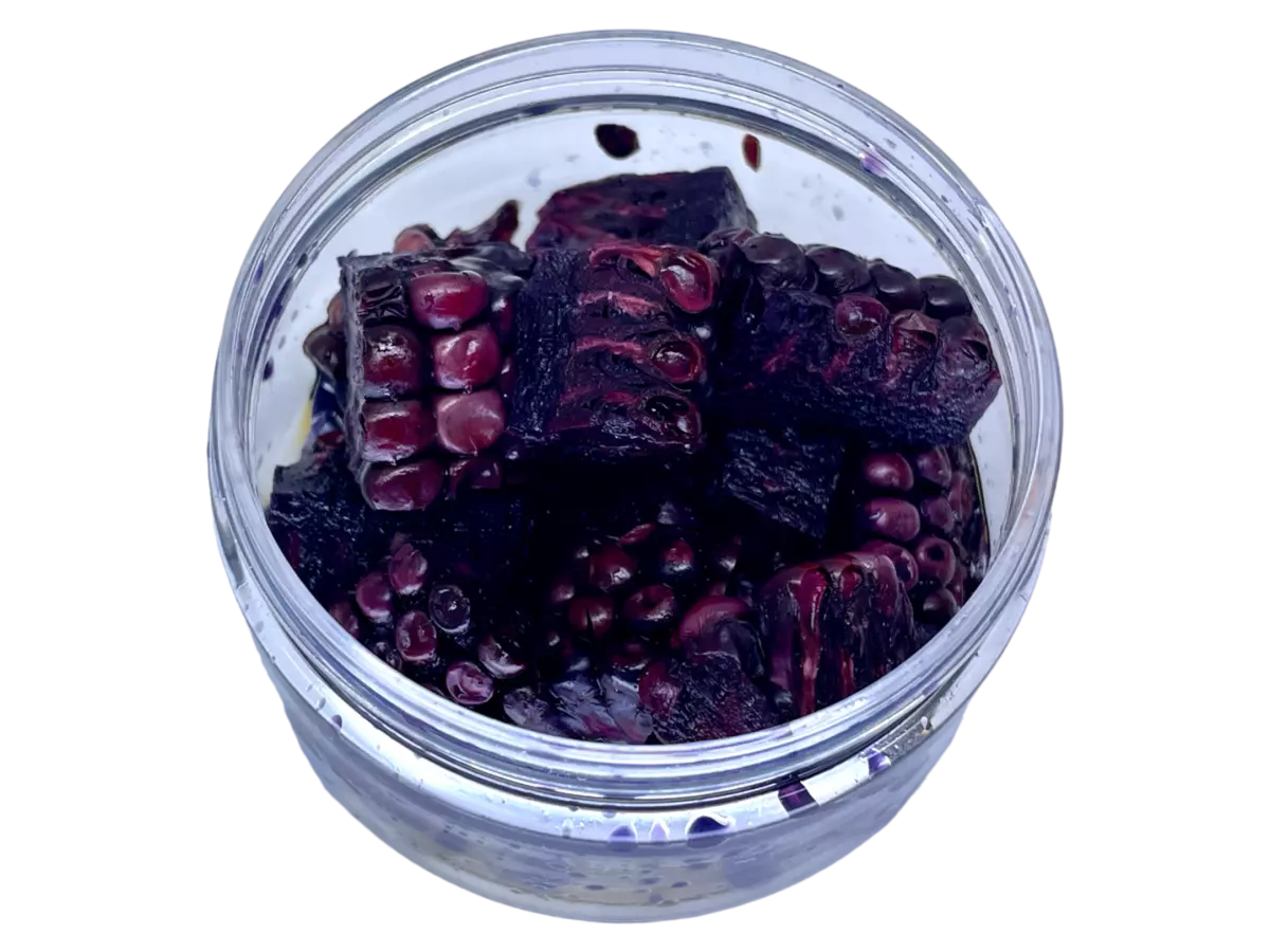 Nakládané kousky mladé kukuřice jsou velmi funkční nástrahou pro lov kaprovitých ryb. Kousky jsou vytažené z aromatických nálevů z aminokyselin, kde nějaký čas fermentovaly, tak aby byly pro ryby více atraktivní. Nástraha je zpracována tak, aby byla včetně dřevnaté části, která nástrahu vyvažuje a díky jednostrannému těžišti se i lépe zasékává. Co více, tato část dřevnaté nástrahy velmi dobře nasává naše speciální aroma a vylučuje ho pod vodou po velmi dlouhou dobu. Kapři budou také překvapeni jiným tvarem. Nástrahy se vyrábí ve třech velikostech S,M,L. Velikost S je pro feederové chytání, velikost M pro kaprové chytání a háčky č. 5- č.8 a Velká velikost L je určena pro lov kapitálních kaprů a háčky velikosti č.4 a více. Upozornění. Do nálevu používáme pouze přírodní konzervanty a někdy může docházet k silnější fermentaci, změně vůně, či barvy. Toto ovšem není na závadu. Jako podkladové krmení se nám nejvíce osvědčil partiklový mix, samostatná kukuřice a kukuřičné pelety.