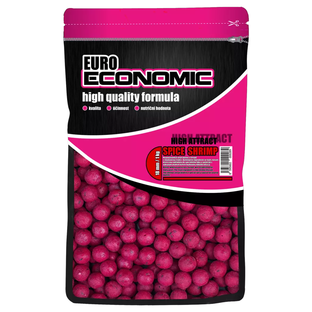 Kořeněná Kreveta (Spice Shrimp) je velmi účinné a nesmírně atraktivní boilies vyrobené na základě mletých krevetek a koření. Boilies, které je vhodné pro velké a dlouhodobé krmné kampaně. Velmi dobře stravitelné a lze použít po celý rok! Nutričně bohaté boilies za velmi nízkou cenu... Tip: Boilies Spice Shrimp nechte nasáknout All Amino Nutricem (můžete několik dní před lovem), těsně před chytáním boilies zvýrazněte boosterem Spice Shrimp a zaprašte Nutric Acid Fishem. V minulých letech jsme ke vší spokojenosti vyprodukovali několik tun boilie Euro Economic za hranice České republiky. Velký zájem o boilie Euro Economic nás dovedl ke spolupráci se světově známými velkovýrobci prvotřídních produktů, s kterým jsme sjednotili odběry kvalitních surovin, abychom maximálně snížili náklady. Díky naší kooperaci a moderní technologické lince dnes firma LK Baits produkuje "krmné"-nutričně bohaté boilies za velmi příznivou cenu!