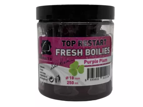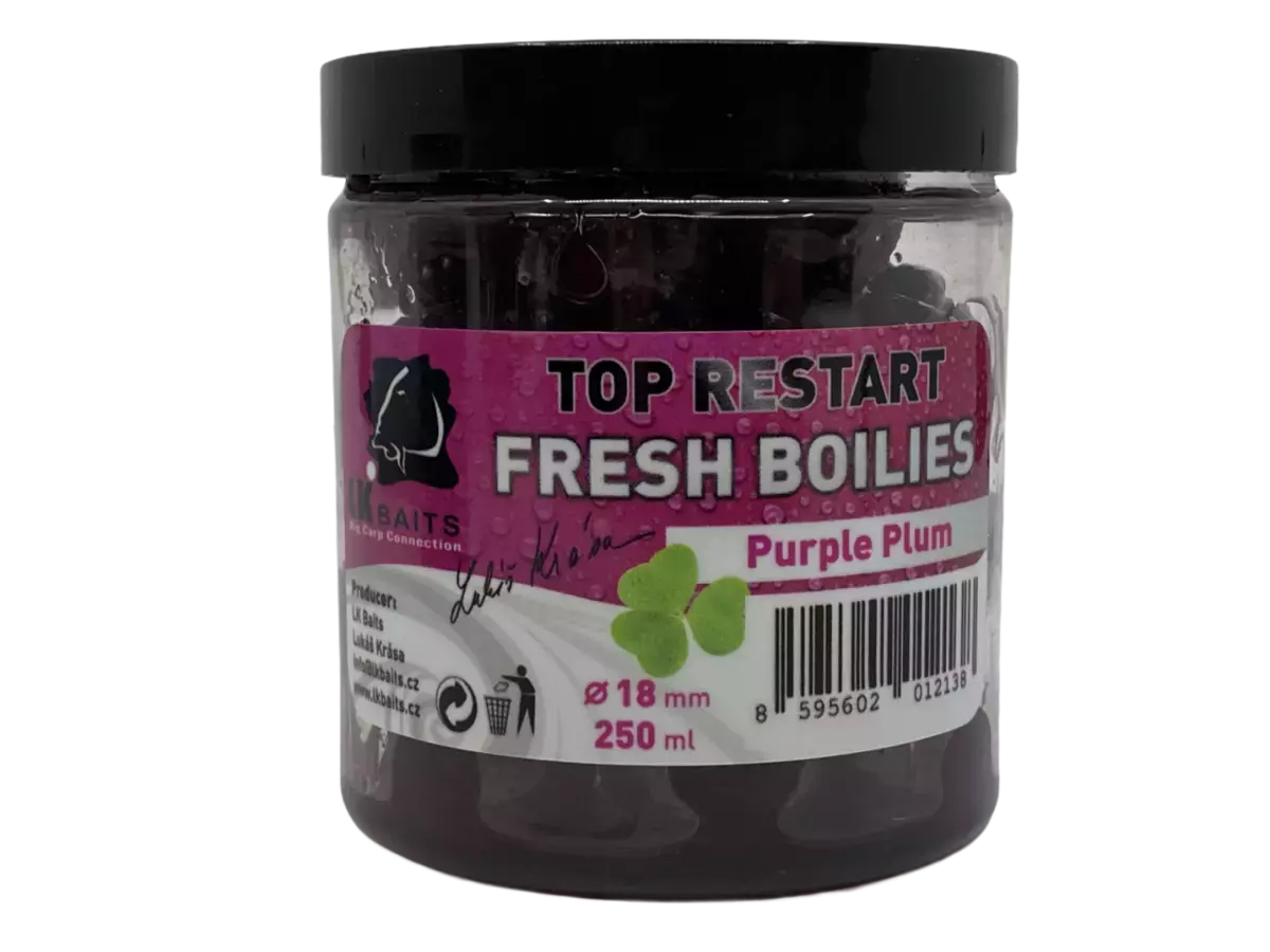 LK Baits FRESH BOILIES TopRestart 18mm 250ml Purple Plum VÝPRODEJ