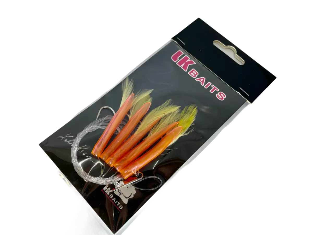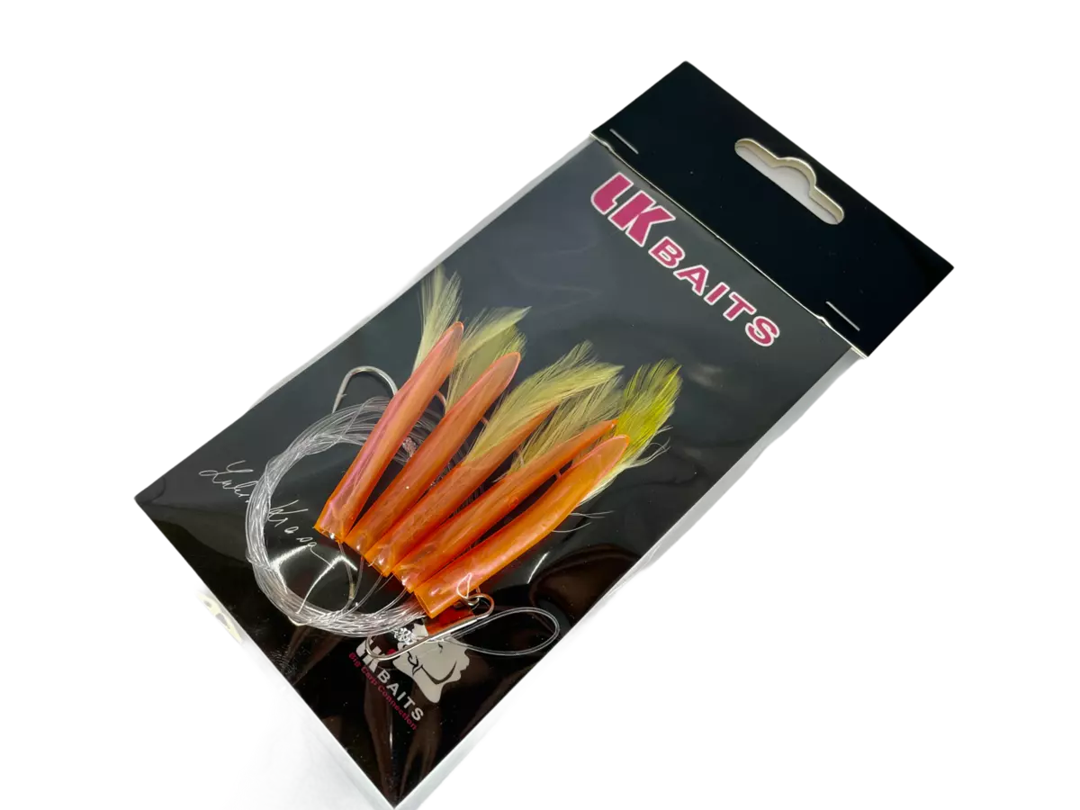Hotový návazec určený především pro lov makrel, tresek a jiných druhů mořských ryb. Stačí připnout olovo, navázat na kmenový vlasec a jste připraveni k rybaření na moři. 5 ks nástrah s barevným peřím na návazci.