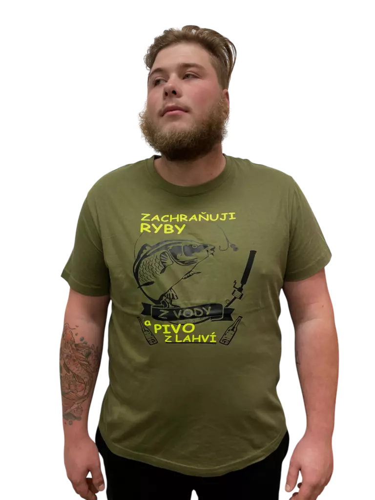 LK Baits pánské triko Khaki Zachraňuji ryby vel.L