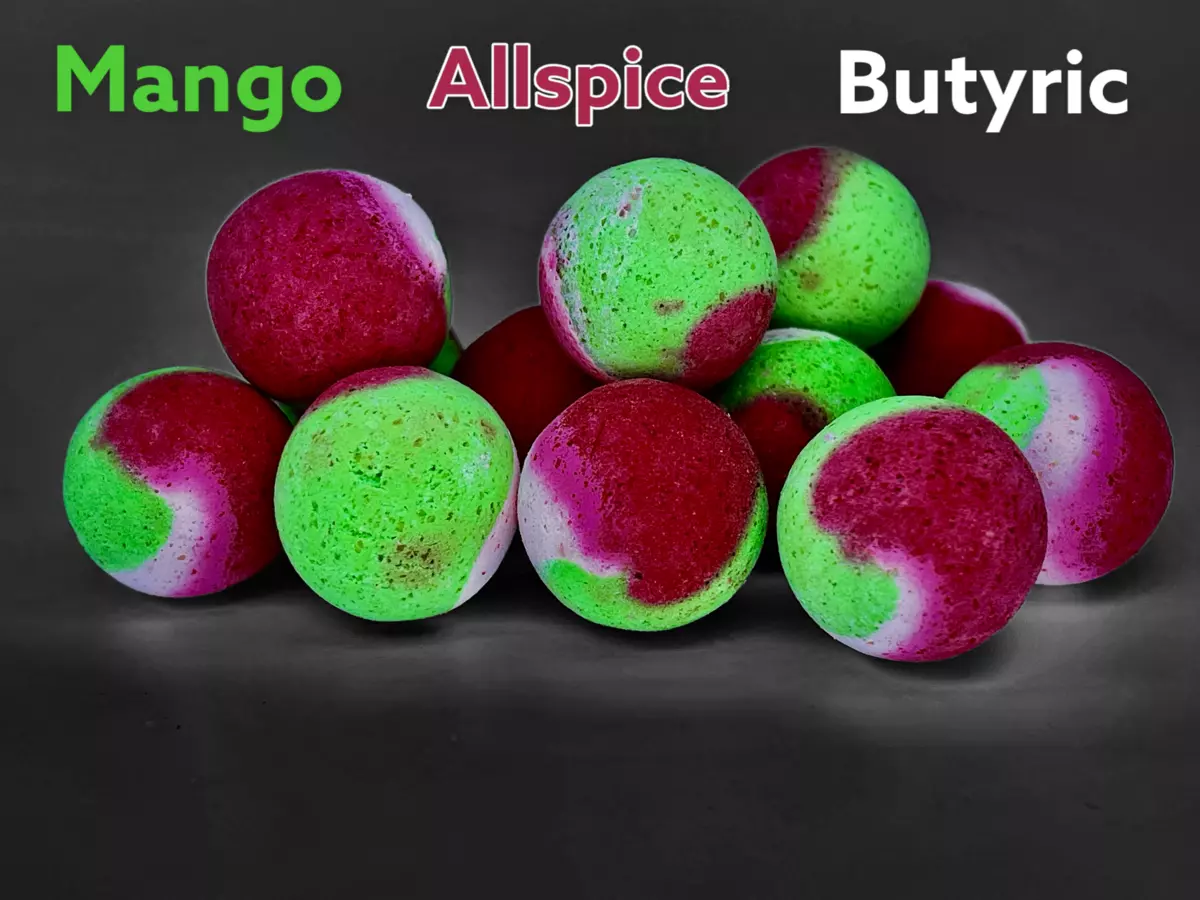 Svěží a naprosto nová plovoucí nástraha jejíchž základem jsou unikátní kombinace přírodního ovoce, bylin, koření a výtažků květin s obsahem přírodního sladidla Stévie cukerné. Unikátní receptura - moderní technologie - svěží - atraktivní - extra plovoucí. Dominantní složky: Esenciální olej plodu mango, extrakt koření a kyselina máselná.