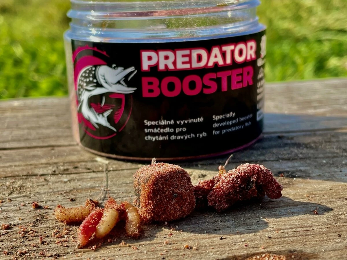 Booster je složen z celé řady přírodních látek, jehož základem je rybí extrakt a specifický signál navozující zraněnou rybku, který je pro dravé ryby velmi dobře znám. Bakteriálním procesem - rozkladem přírodní hmoty, jsme také navodili důležitý potravní signál, s kterým se dravé ryby přirozeně setkávají v případě uhynulé rybky nebo jiného živého organizmu. Booster práškový Predátor má vysokou přilnavost k nástraze a po vhození do vody dochází k okamžitému šíření atraktantů do okolí.
