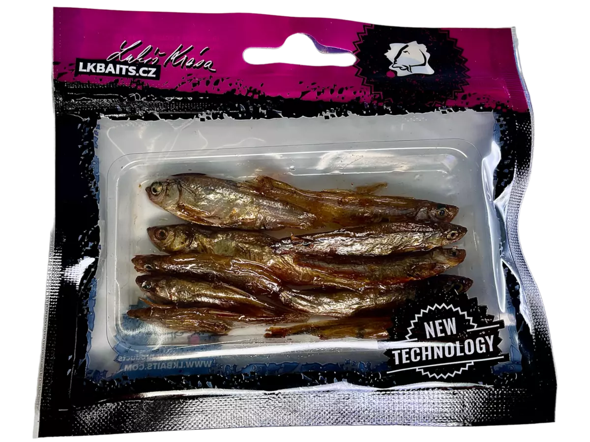 Sušená a následně naložená rybička v úspěšném dipu Predátor, která je velmi zajímavou a aromatickou nástrahou pro lov okounů, candátů a pstruhů.