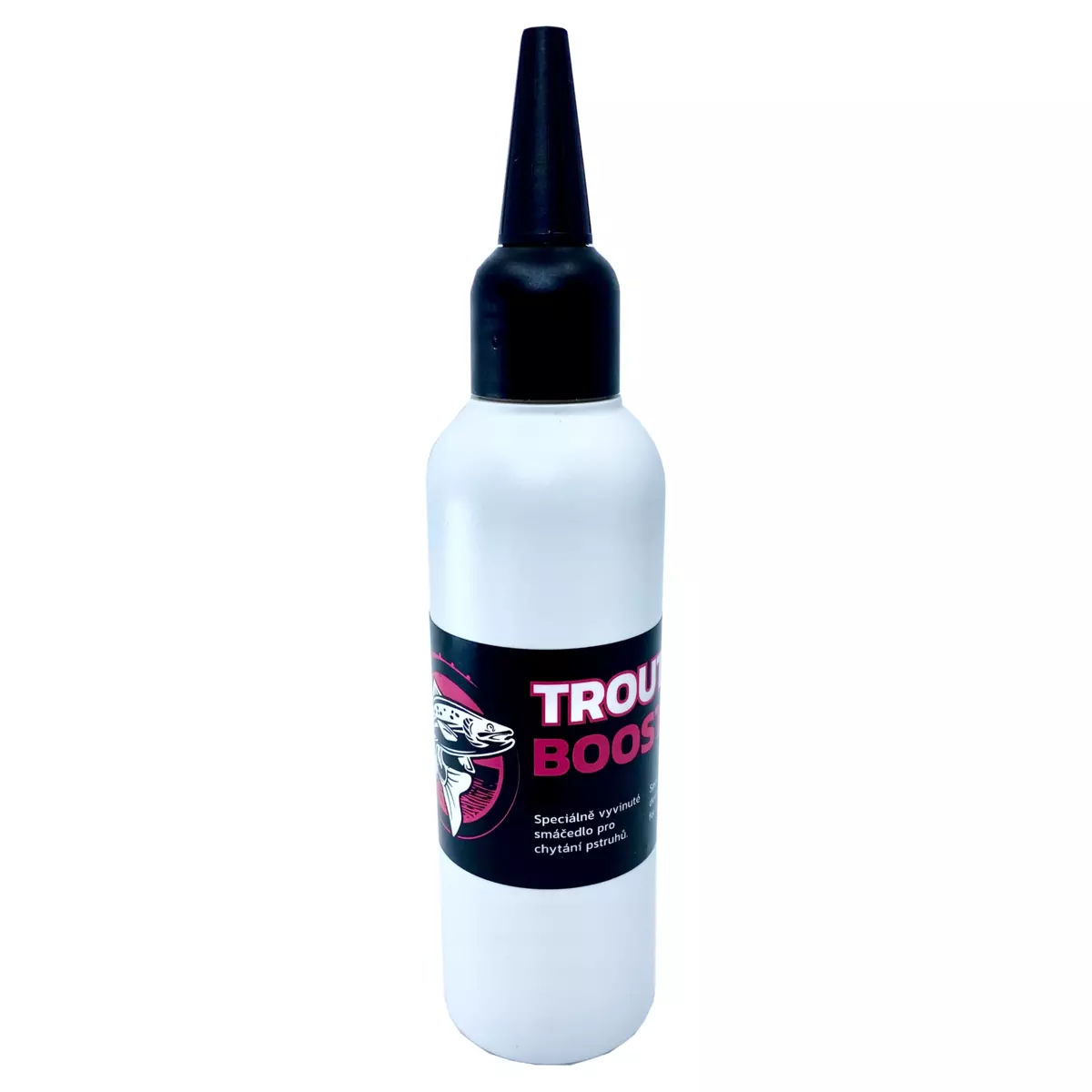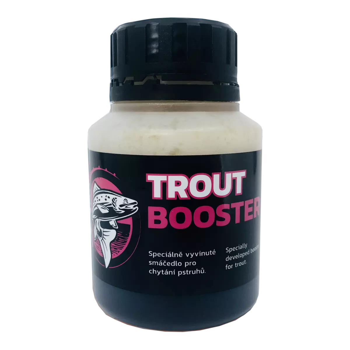 Speciální booster vyvinutý pro zvýšení počtu záběrů pstruhů jak při přívlači, tak na dírkách. Booster Trout má vysokou přilnavost k nástraze a po vhození do vody dochází k okamžitému šíření atraktantů do okolí. Testováním bylo prokázáno, že použitím naší tekutiny zvýšíte počet záběrů až na pětinásobek oproti nástrahám, kde Booster Trout použit nebyl. Použití: Nástrahu můžete do dipu libovolně namáčet nebo potírat štětečkem. Atraktant je vyvinut tak, aby na nástraze vydržel co nejdéle, ale doporučujeme v průběhu lovu zatraktivňovat dle potřeby. Booster Trout byl pro objektivnost účinku testován, jak na stojatých vodách tak i řekách s velmi dobrými výsledky. Upozornění: Některé nástrahy (převážně gumové) přicházejí z výroby opatřeny různými oleji, silikony a také pro ryby nepatřičným zápachem. Pro zachování správného signálu našeho Trout Boosteru, nedoporučujeme přímé namáčení těchto nástrah do naší lahvičky. Opětovným namočením znehodnocujete účinnost výrobku. V tomto případě doporučujeme injekční stříkačkou odebrat potřebné množství tekutiny a zatraktivňovat v jiné lahvičce popřípadě pytlíku.